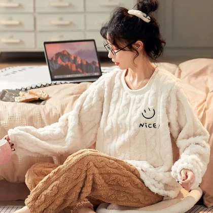 | nameOriginal | Antarctic Pajamas Women's Autumn and Winter Flannel Plus Velvet Thickened Winter Coral Velvet Home Clothing Set Sweet Little Fragrance |