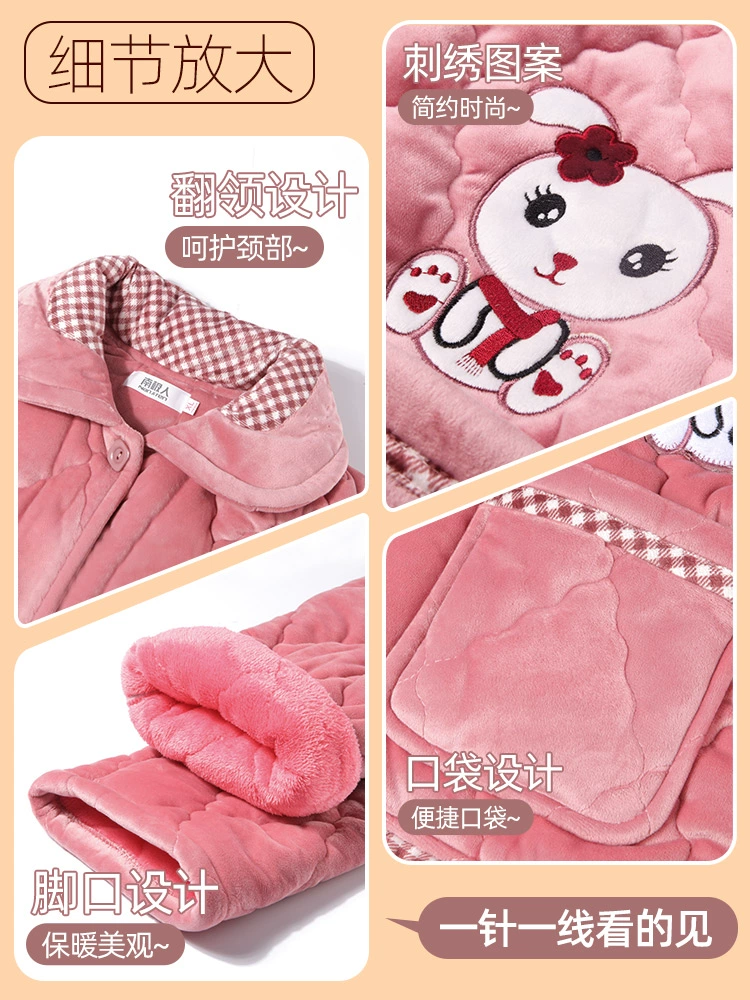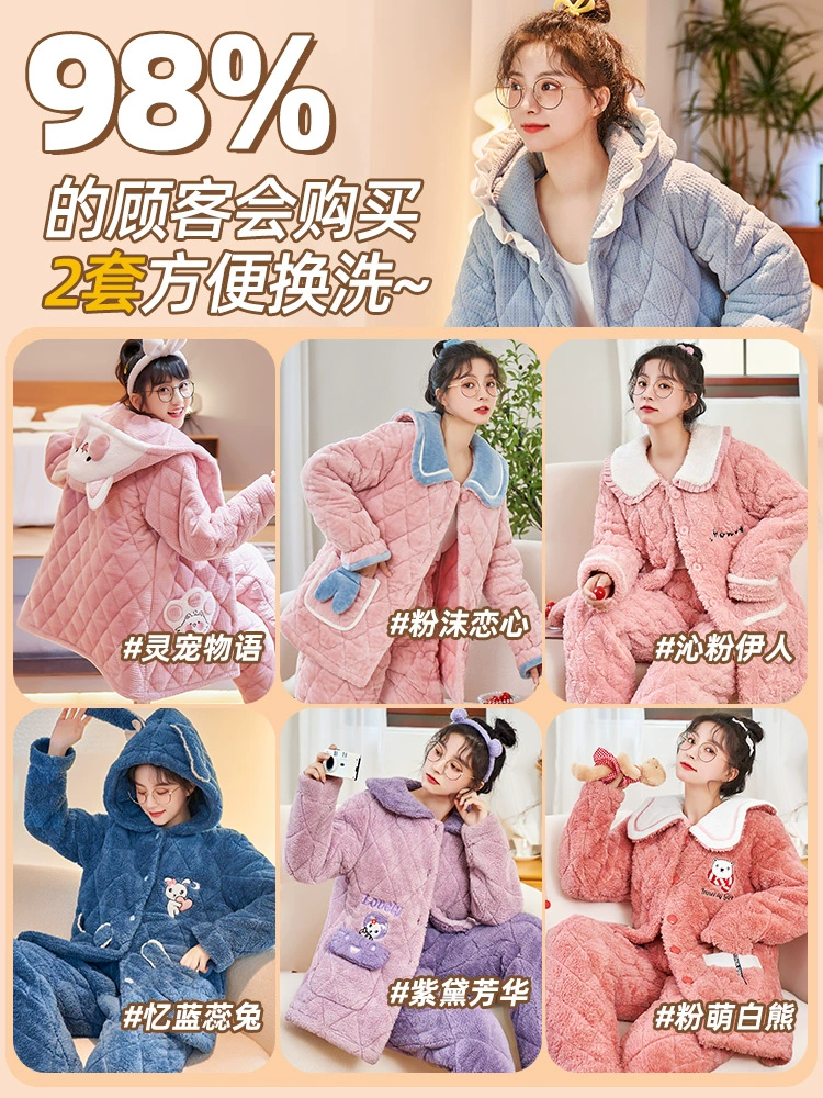 Antarctic quilted 2024 new pajamas for women autumn and winter thickened velvet home clothes set coral velvet warm