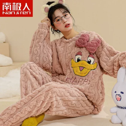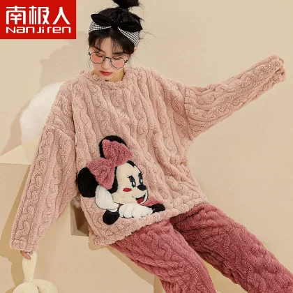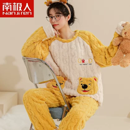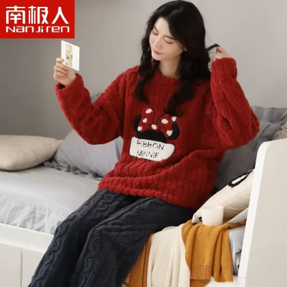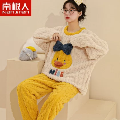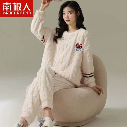 Antarctic women’s winter thickened warm flannel pajamas