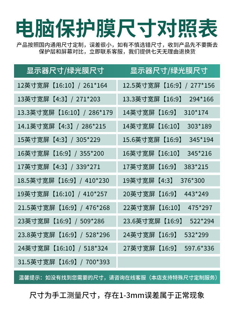 Anti-blue light computer screen eye protection film green light anti-radiation anti-reflective film computer 27 matte notebook 23 anti-sunlight anti-myopia protection vision 14-inch soft film 15.6 monitor desktop