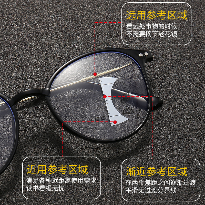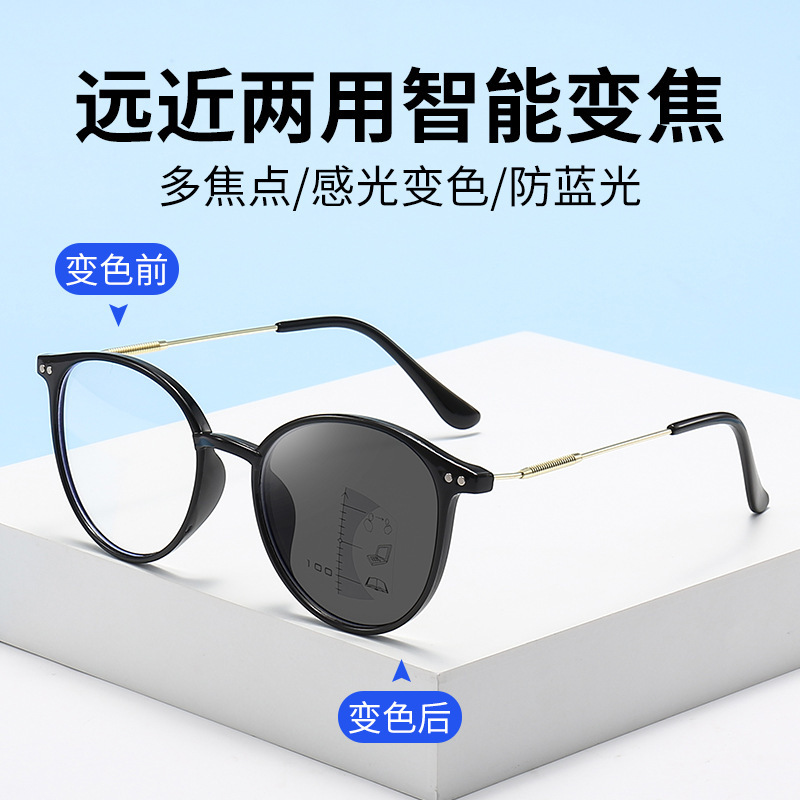 Anti-blue light progressive multi-focus presbyopic glasses women's HD fashion high-end middle-aged and elderly color-changing presbyopic glasses wholesale