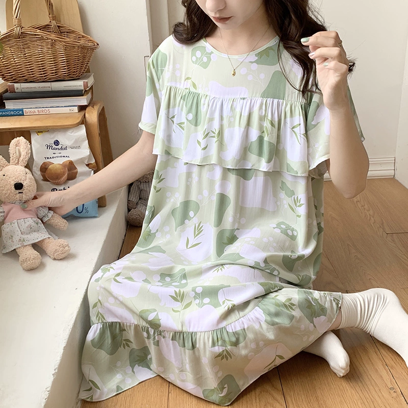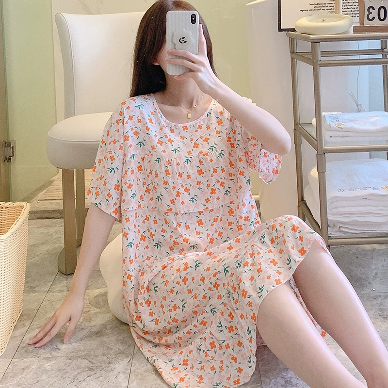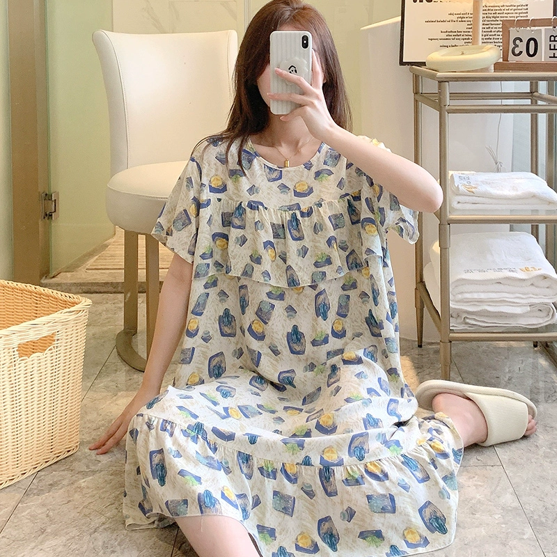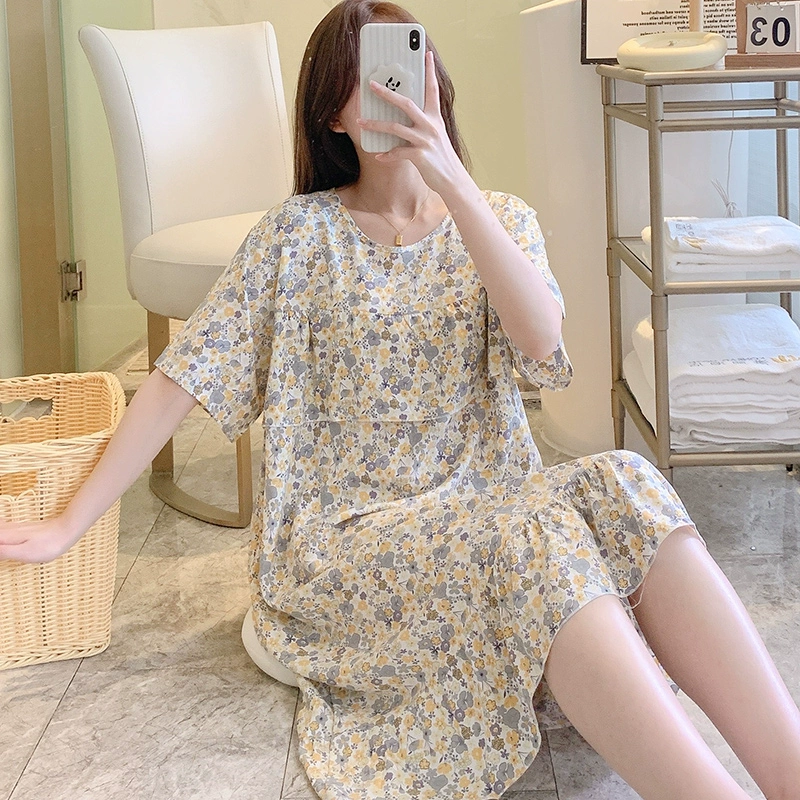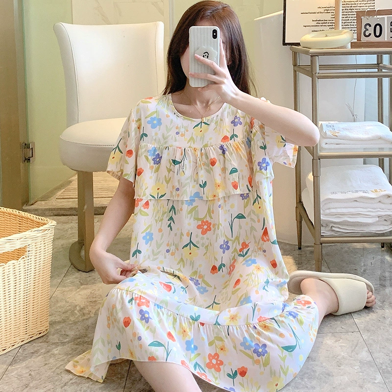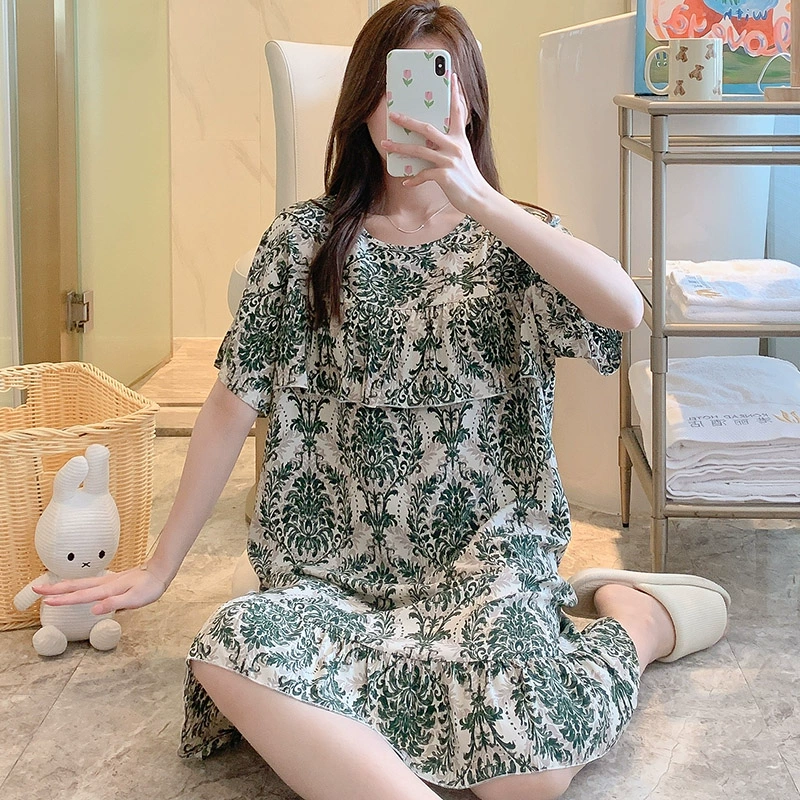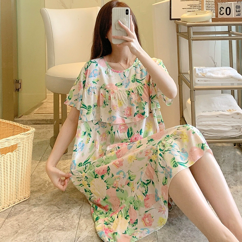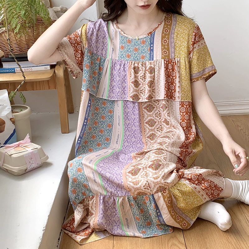 | nameOriginal | Anti-bulge cotton silk nightgown for women spring and summer thin pajamas bestie style national style floral can be worn outside cotton silk home skirt |
