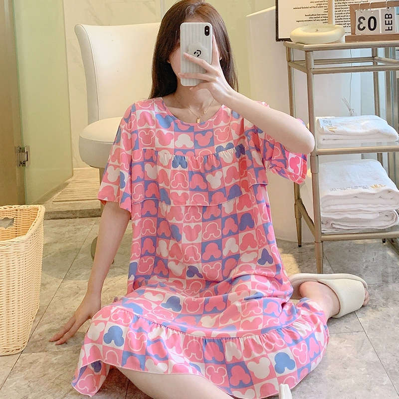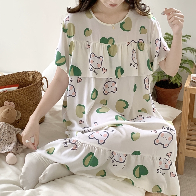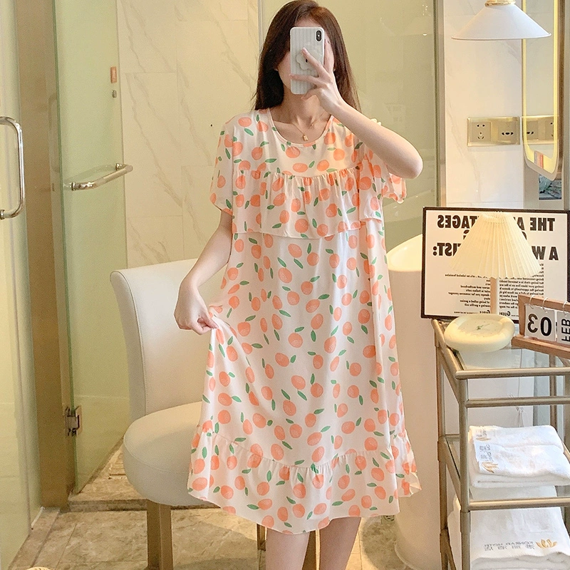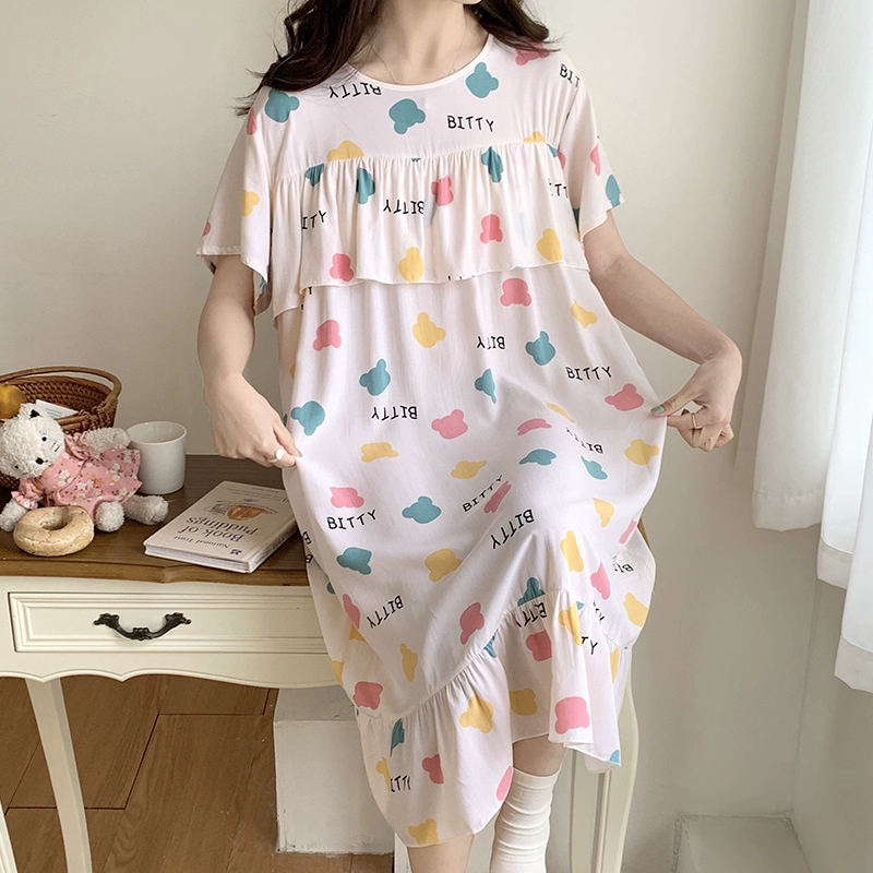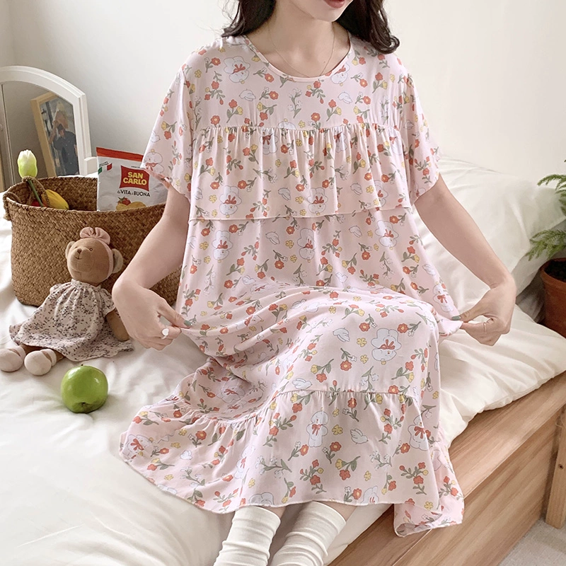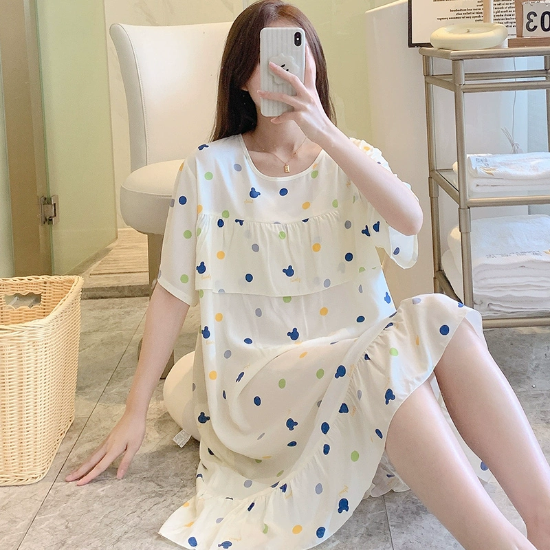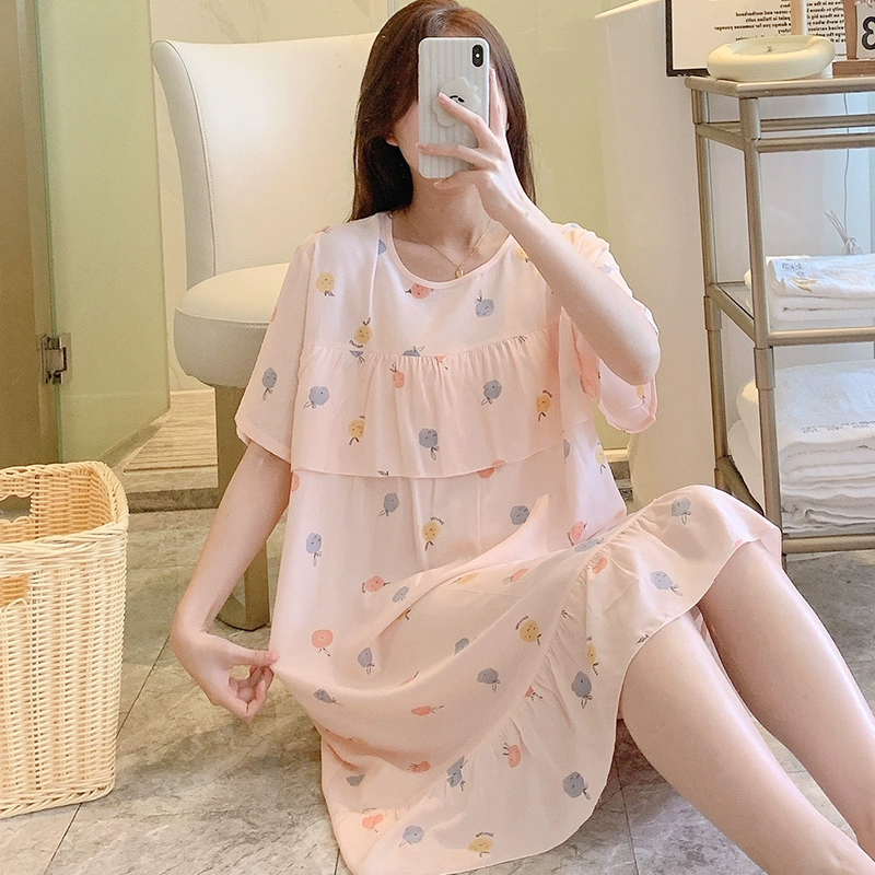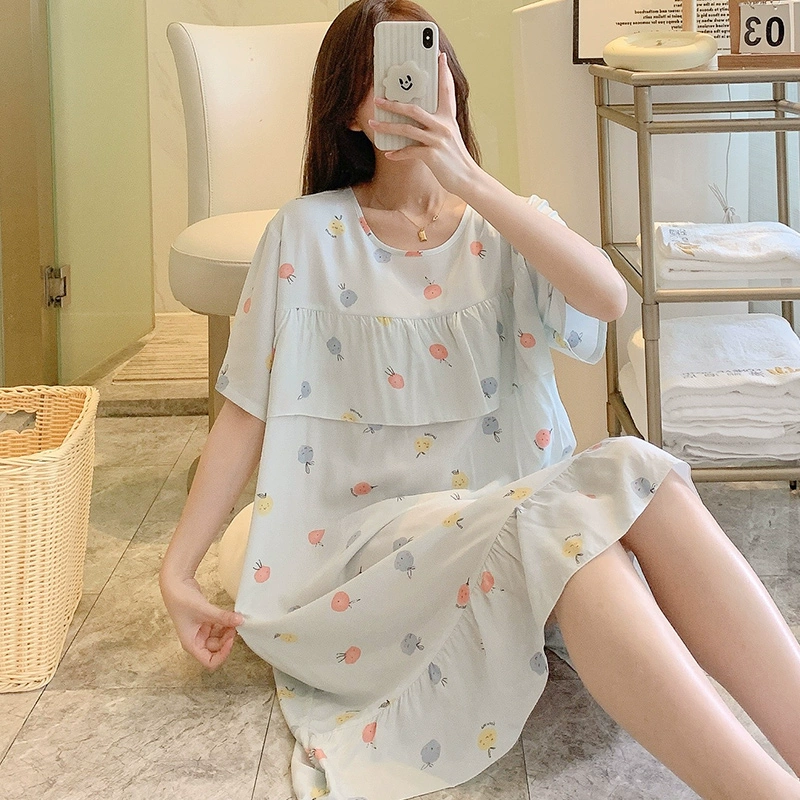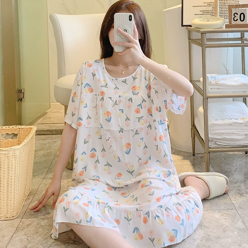 | nameOriginal | Anti-bulge cotton silk nightgown for women spring and summer thin pajamas bestie style national style floral can be worn outside cotton silk home skirt |