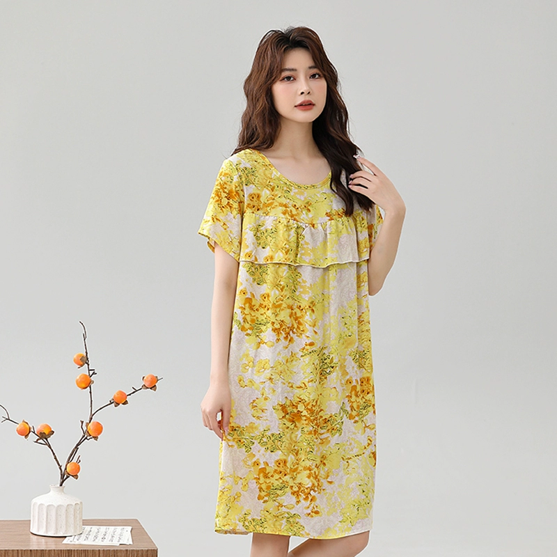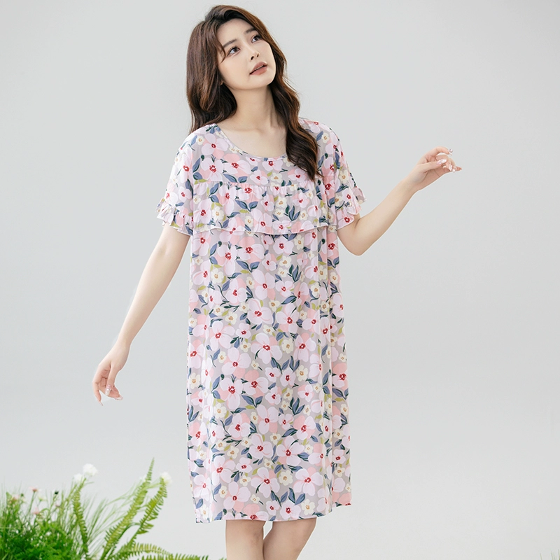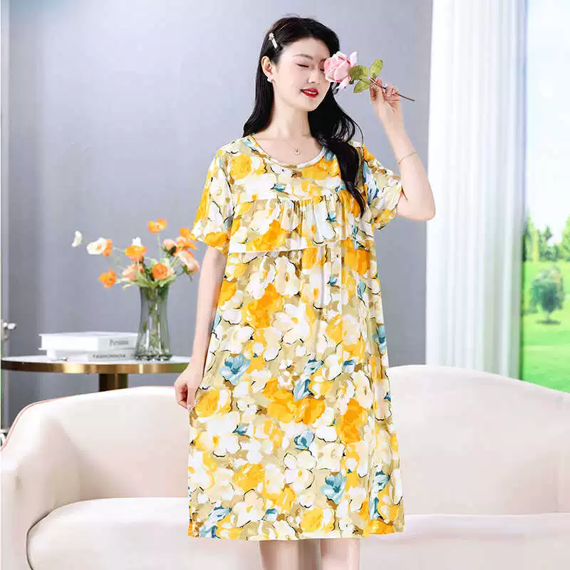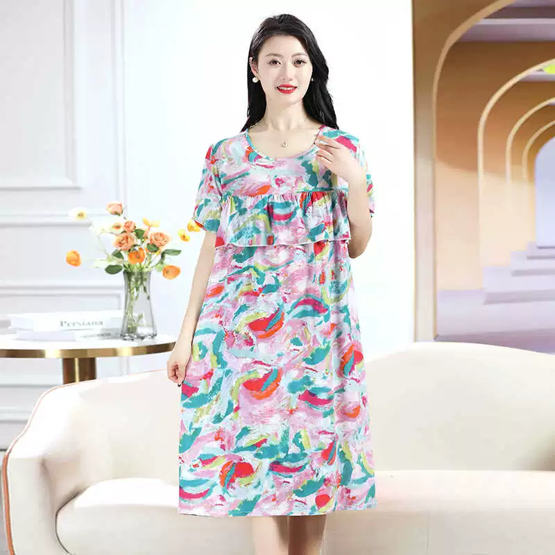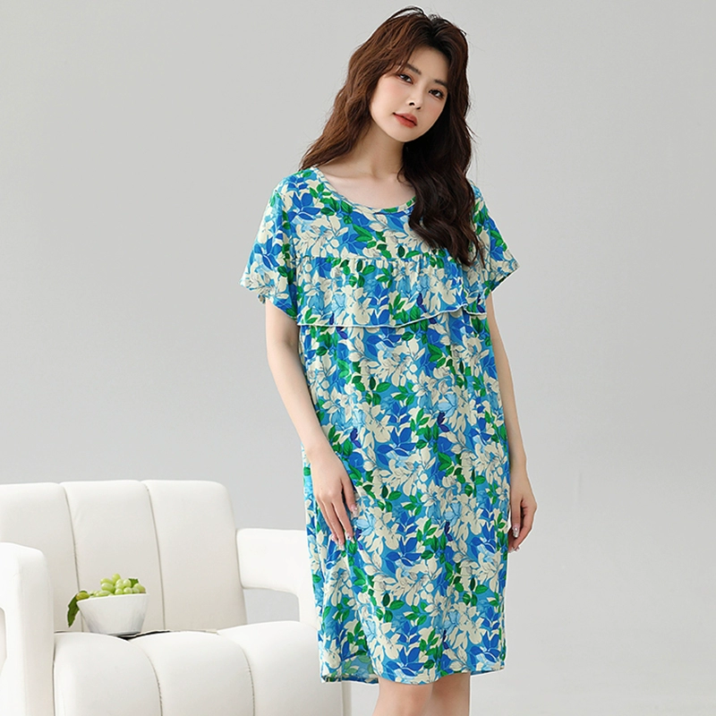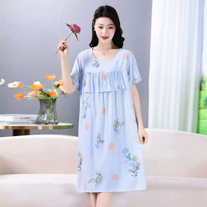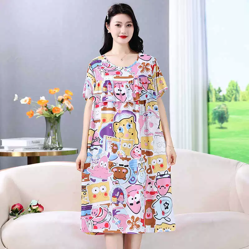 | nameOriginal | Anti-bulge pajamas cotton silk nightgown summer women's 2024 new women's loose home wear cotton silk dress |