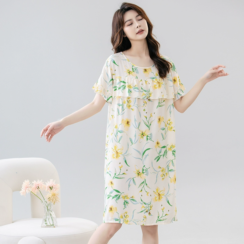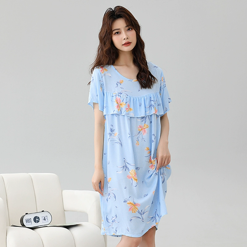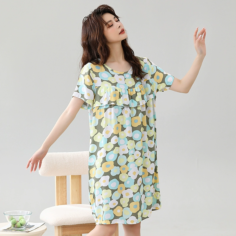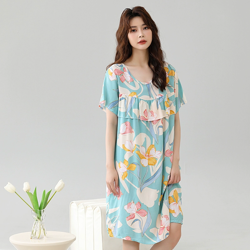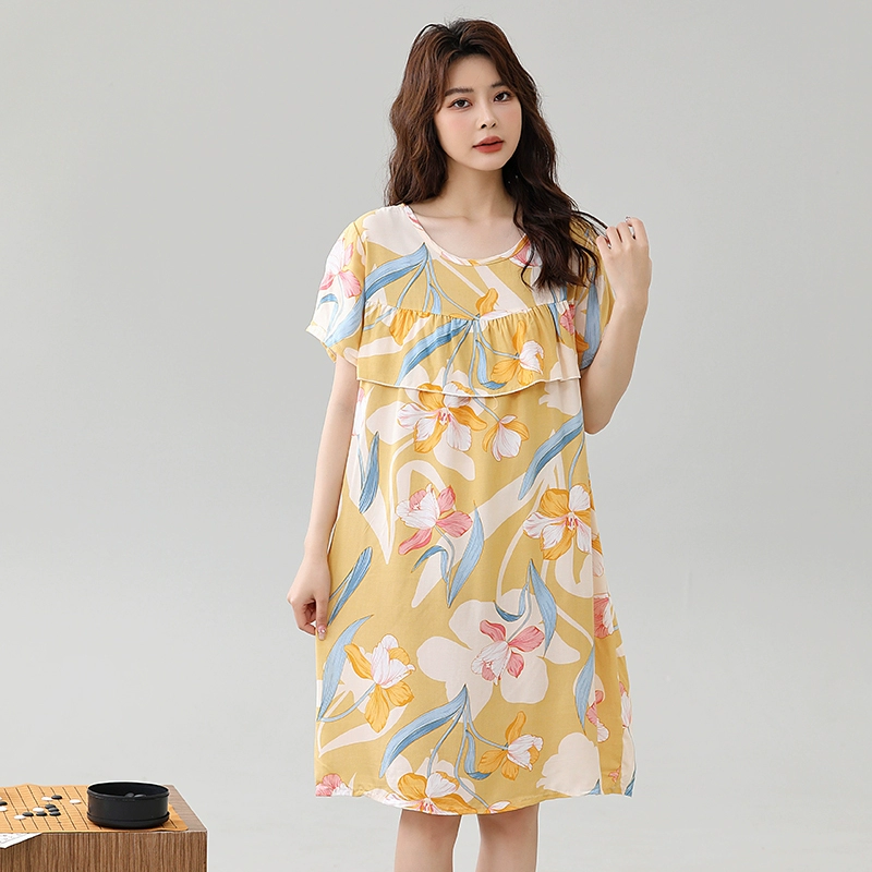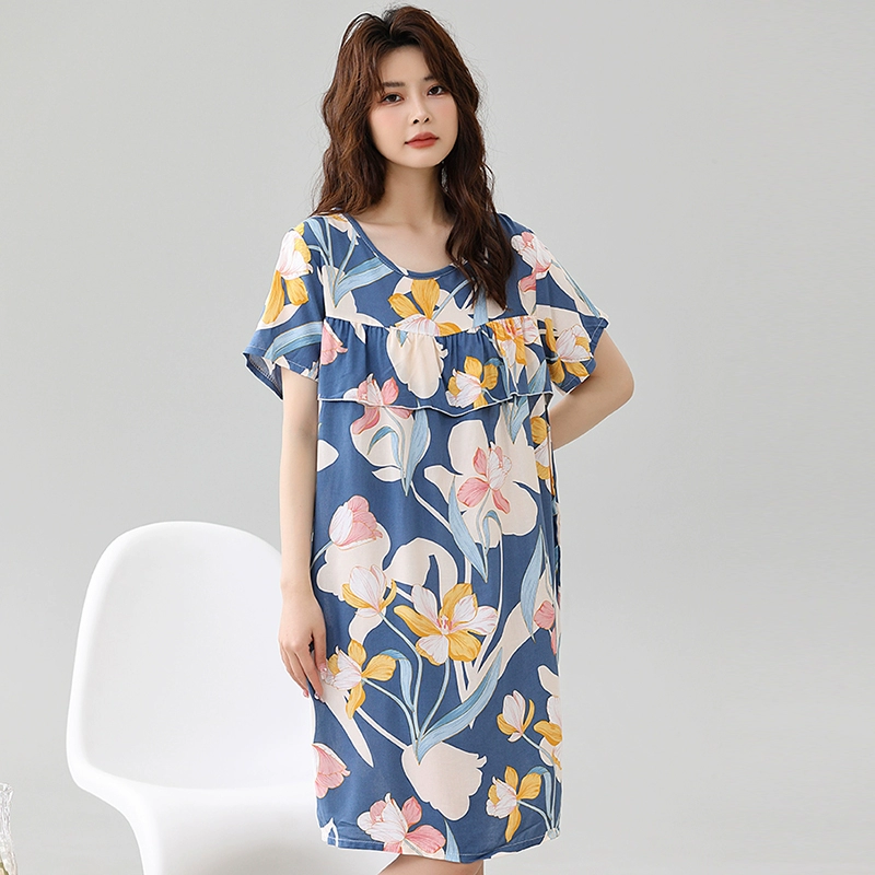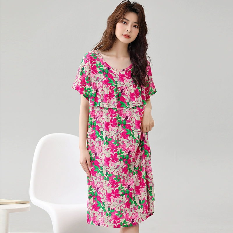 | nameOriginal | Anti-bulge pajamas cotton silk nightgown summer women's 2024 new women's loose home wear cotton silk dress |