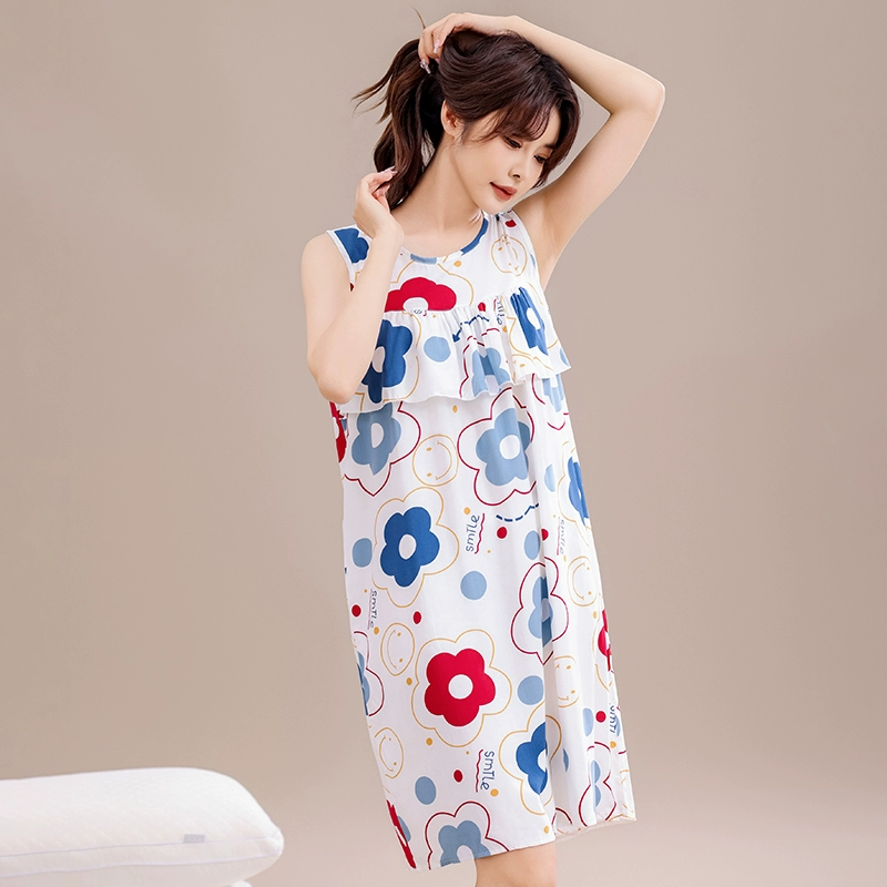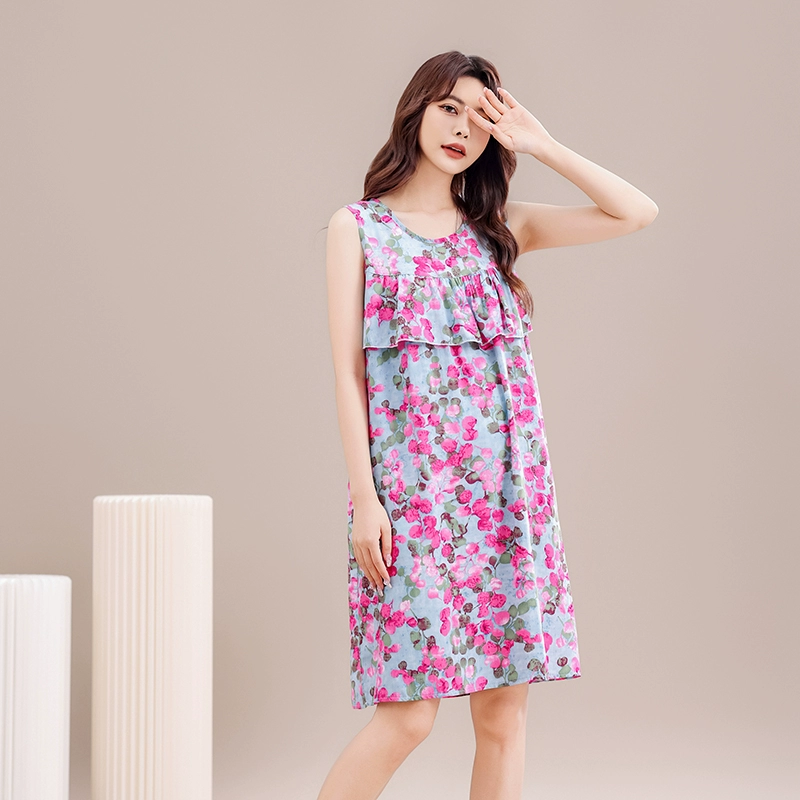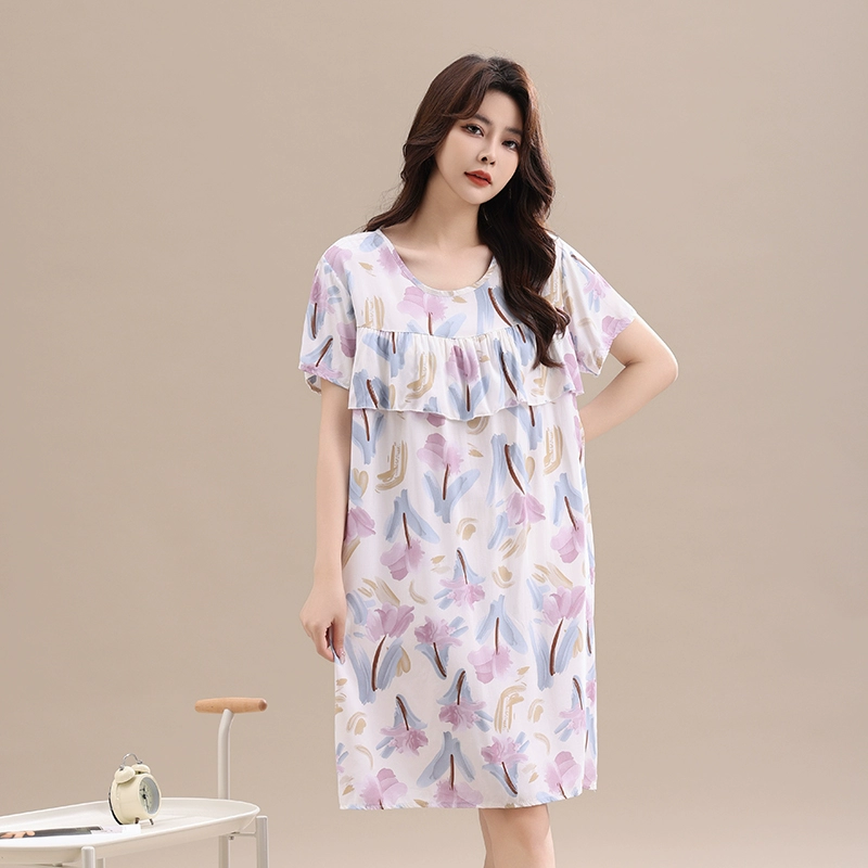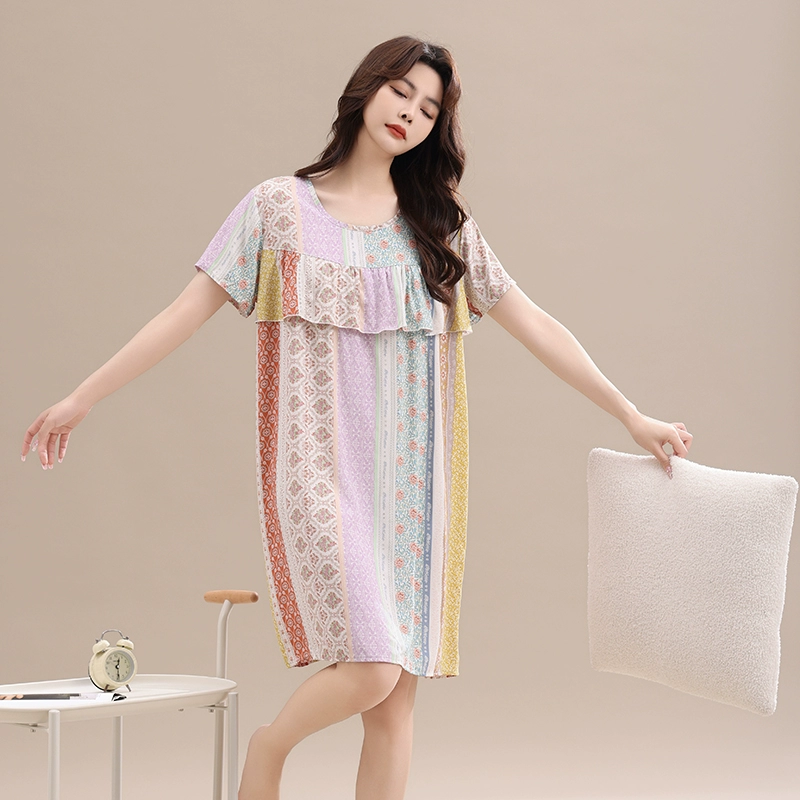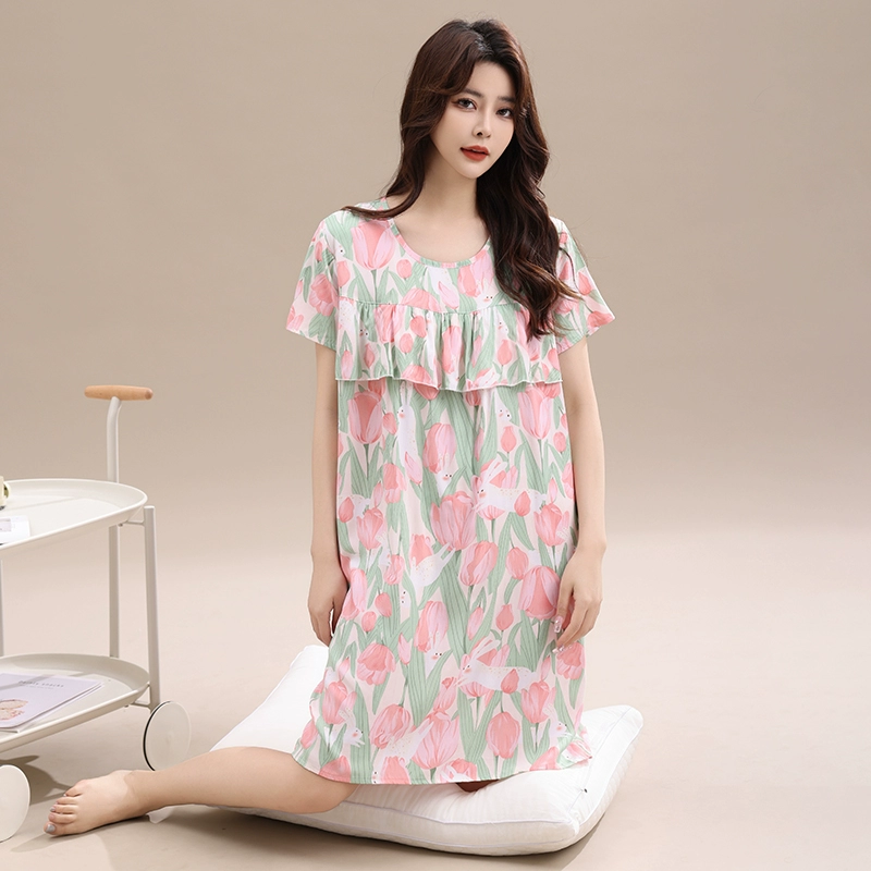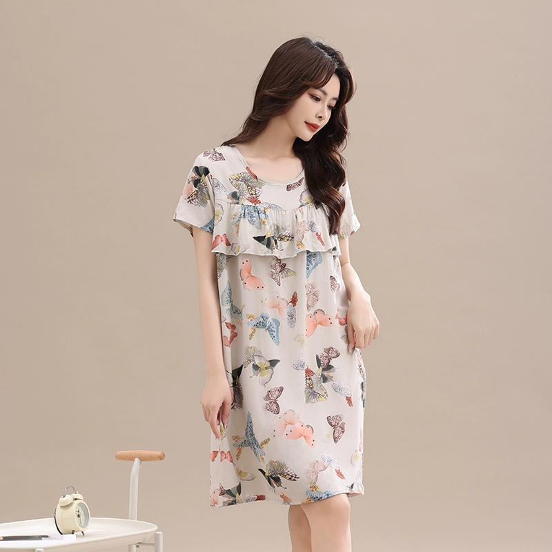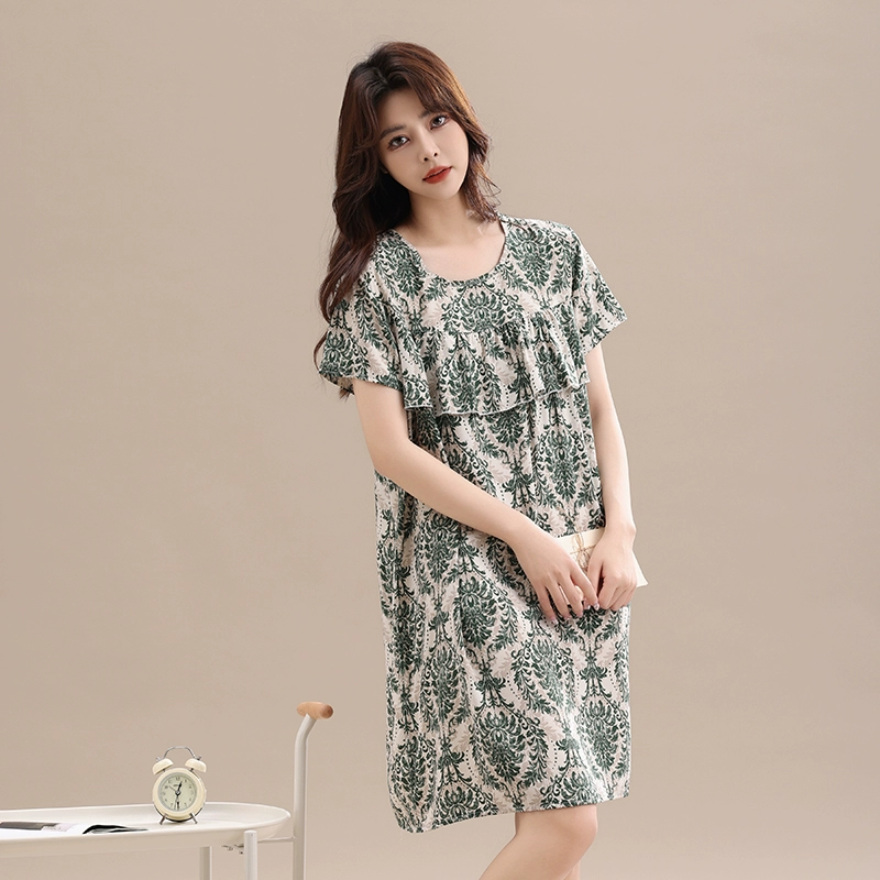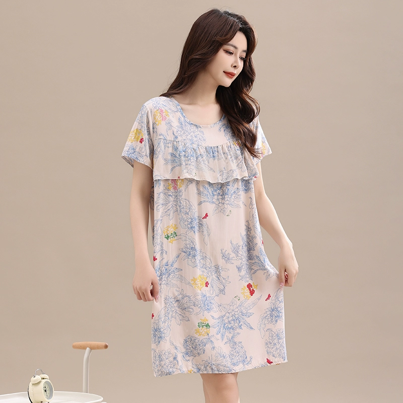 Anti-bump pure cotton silk pajamas for women 2024 new summer loose large size mother’s nightgown artificial cotton home clothes