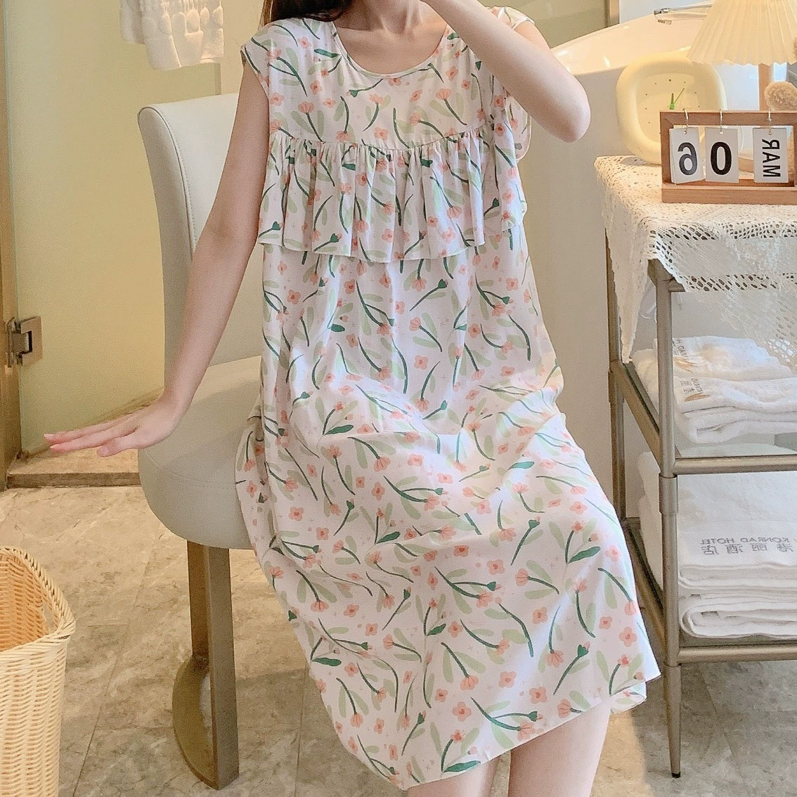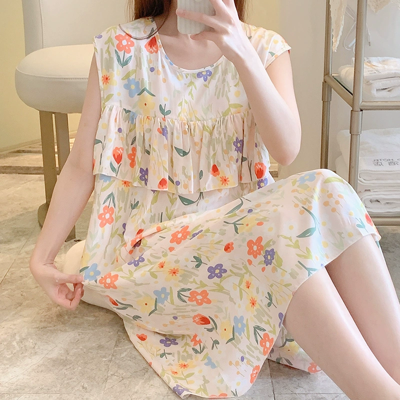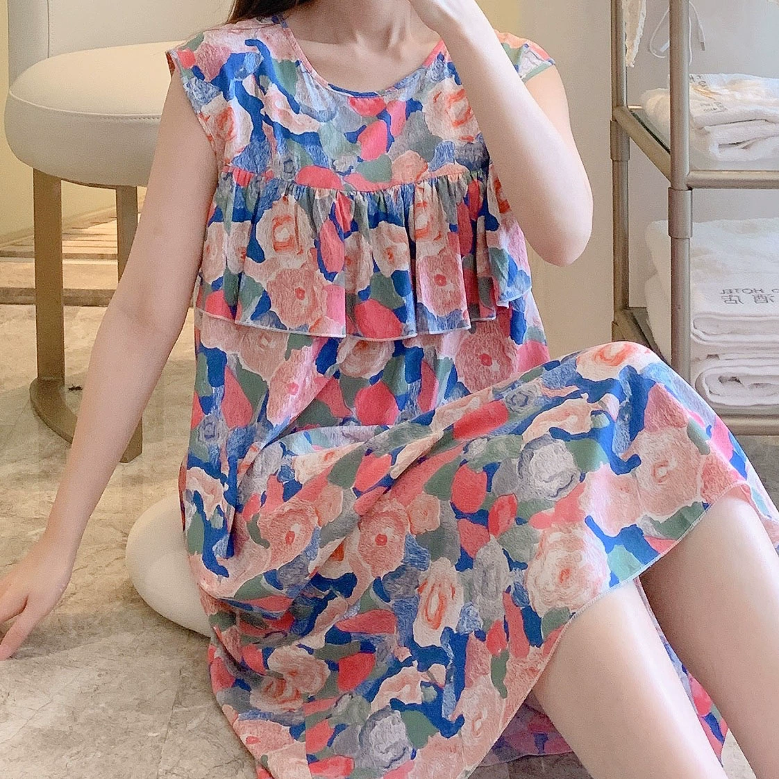 | nameOriginal | Anti-bump summer printed nightgown for women sweet and cute home thin girl home wear sleeveless cotton silk large size skirt |