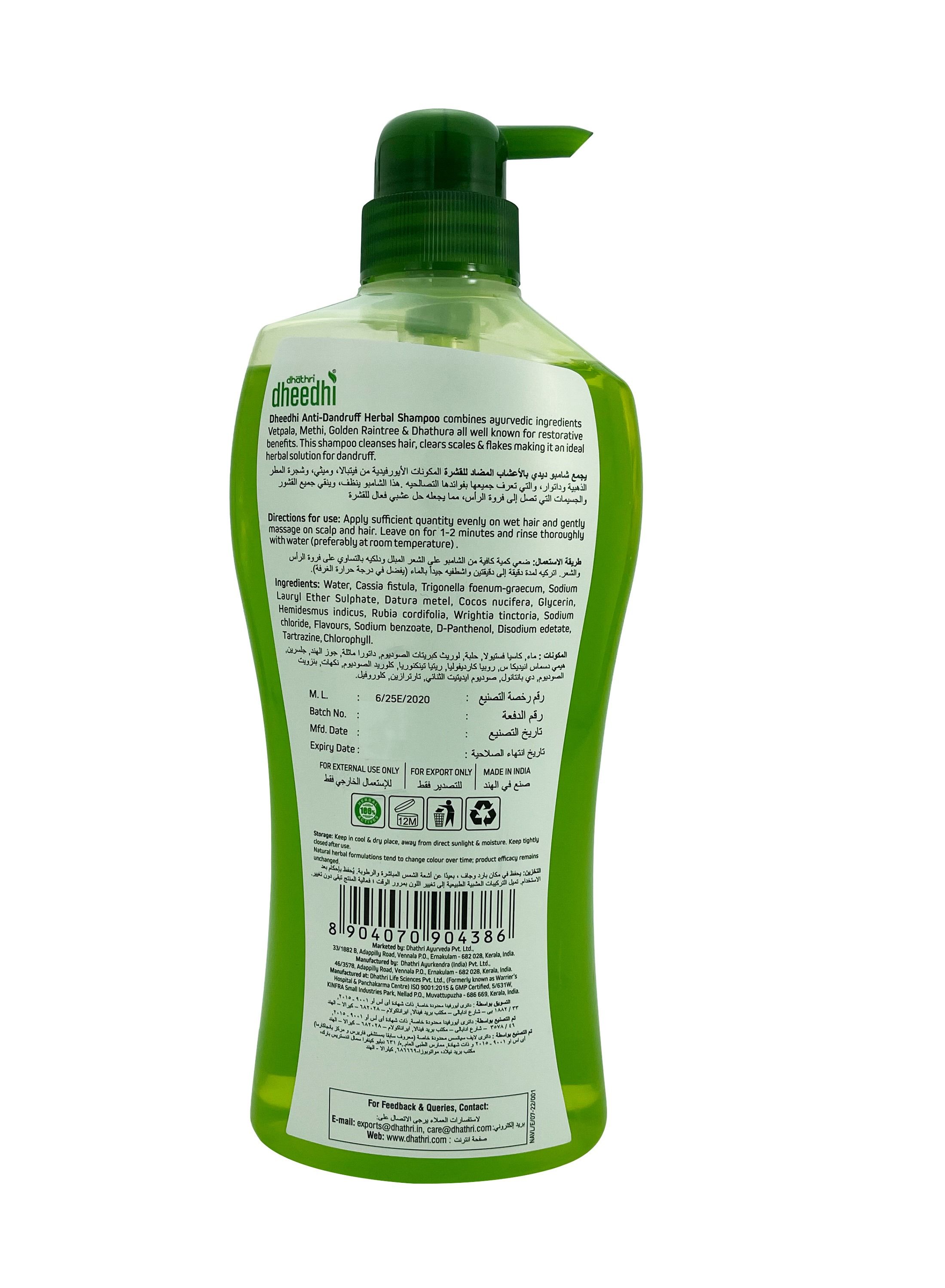Anti-dandruff shampoo by Dhathri, 650 ml.