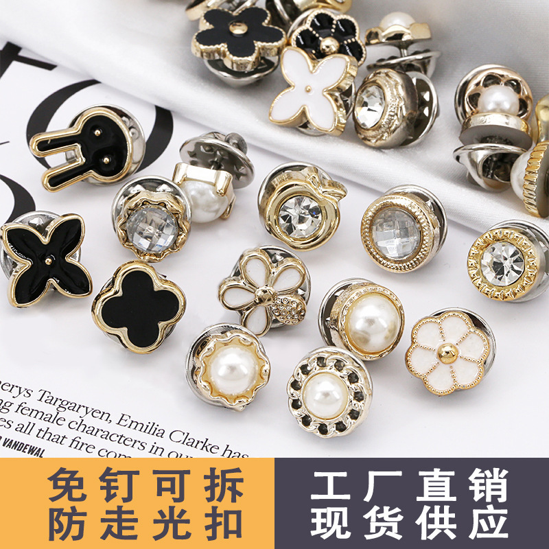 Anti-exposure buckle seamless shirt button hidden buckle chest pin buckle decorations Chanel style button nail detachable buckle