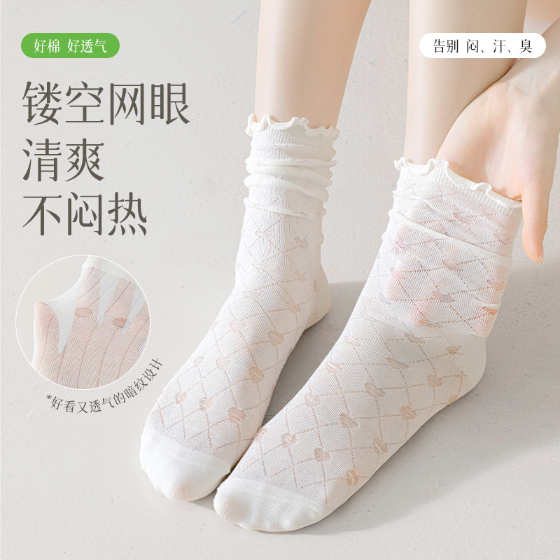 | nameOriginal | Anti-pilling boneless socks for children summer thin breathable mesh piled socks for girls lace girls mid-tube cotton socks |