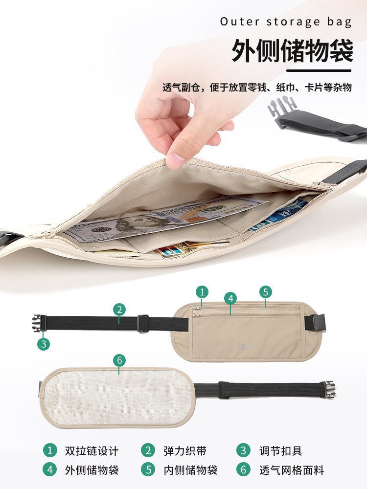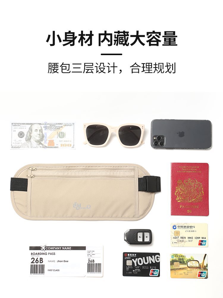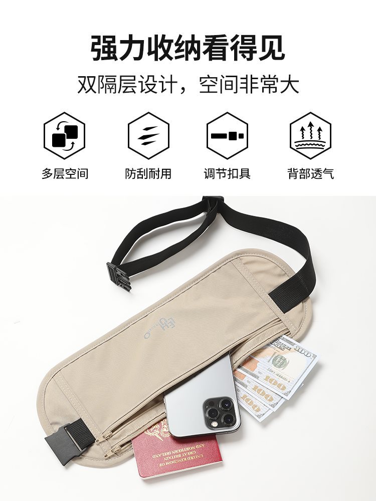 Anti-theft bag close-fitting waist bag for overseas travel 2024 new sports European ladies invisible passport bag anti-theft small bag