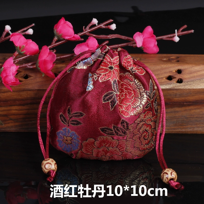 | nameOriginal | Antique brocade red drawstring jewelry bag |
