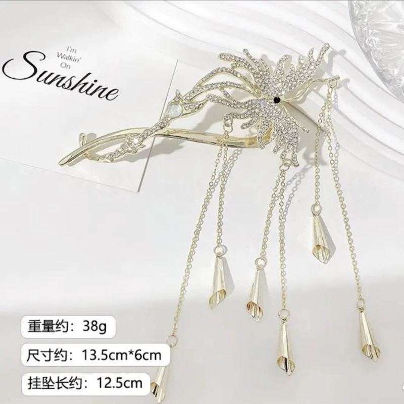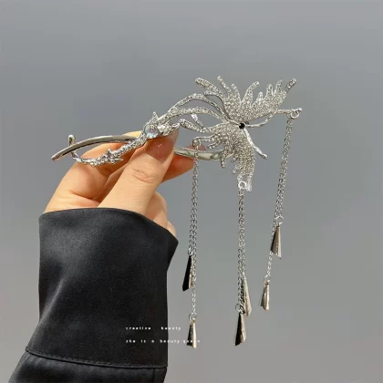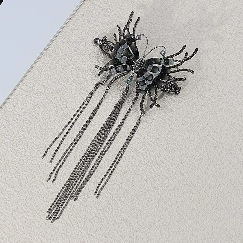 Ancient style butterfly tassel plate hair high-end rhinestone twist clip