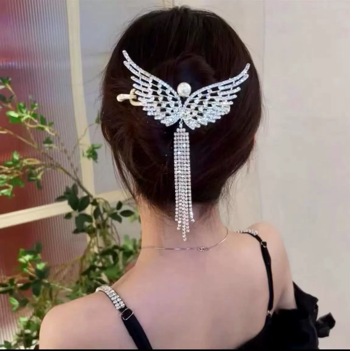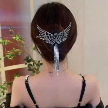 Antique Butterfly Tassel Updo High-end Rhinestone Twist Clip