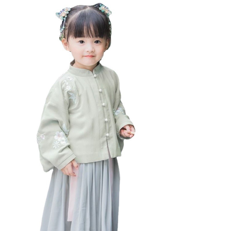 | nameOriginal | Antique girl Hanfu new children Tang suit children's skirt baby suit spring and autumn green pond a generation of hair |