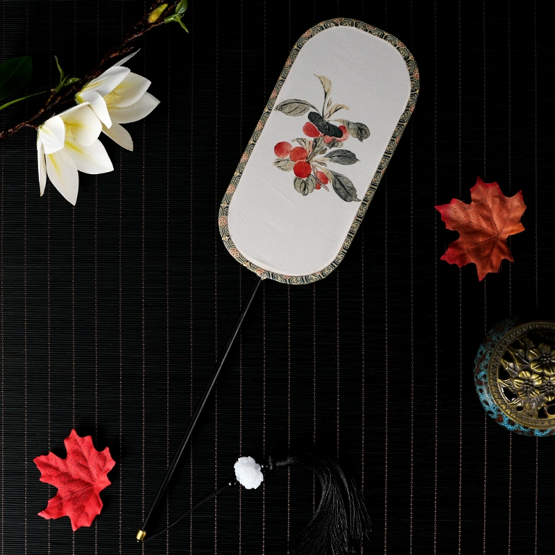 | nameOriginal | Antique palace fan with long and short handle for children and adults, winter melon round fan, imitation flower Luo cherry, song brocade cheongsam photography fan |