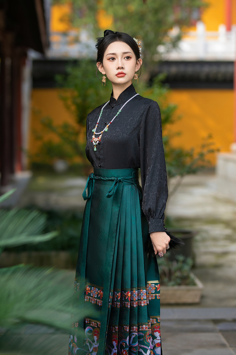 | nameOriginal | Antique style solid color shirt retro improved new Chinese style embroidered long sleeve one-piece oversized swing woven gold vest skirt suit |