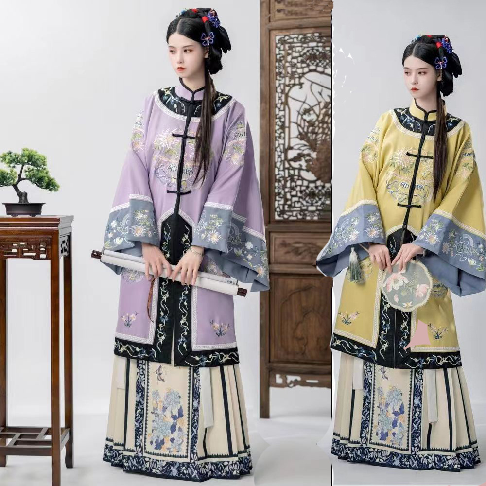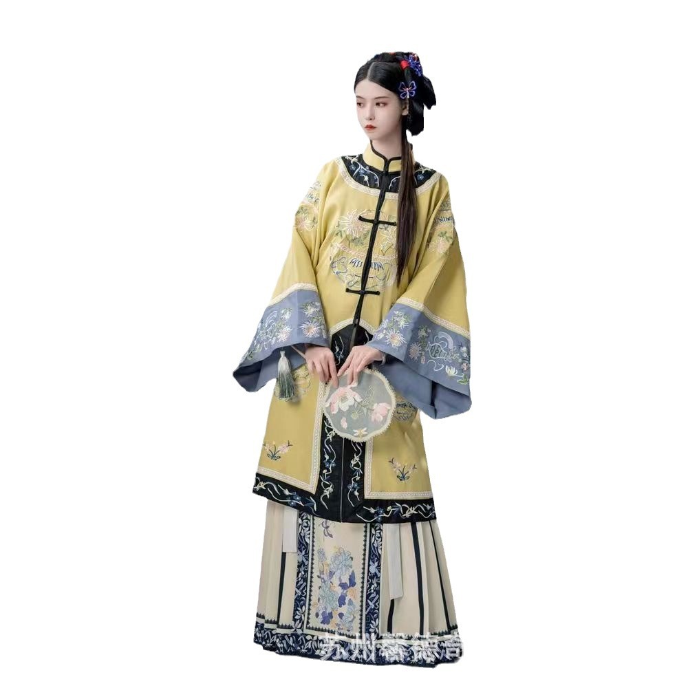 | nameOriginal | Antique Suit Qing Han Imitation Embroidered Top Front Placket Women's Paperon Shirt Horse-faced Printed Skirt Suit Heavy Industry Qing Dynasty Clothing |