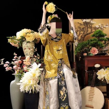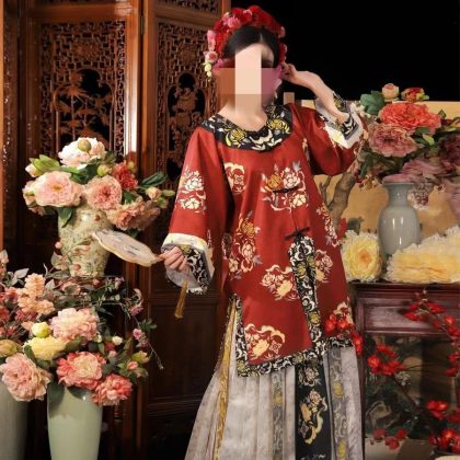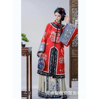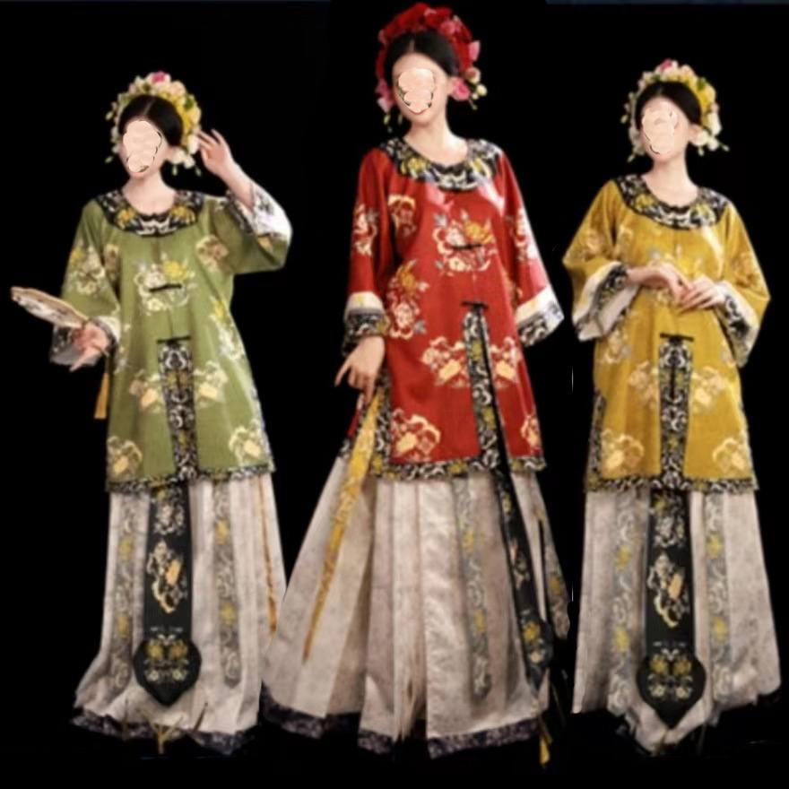 | nameOriginal | Antique Suit Qing Han Imitation Embroidered Top Front Placket Women's Paperon Shirt Horse-faced Printed Skirt Suit Heavy Industry Qing Dynasty Clothing |