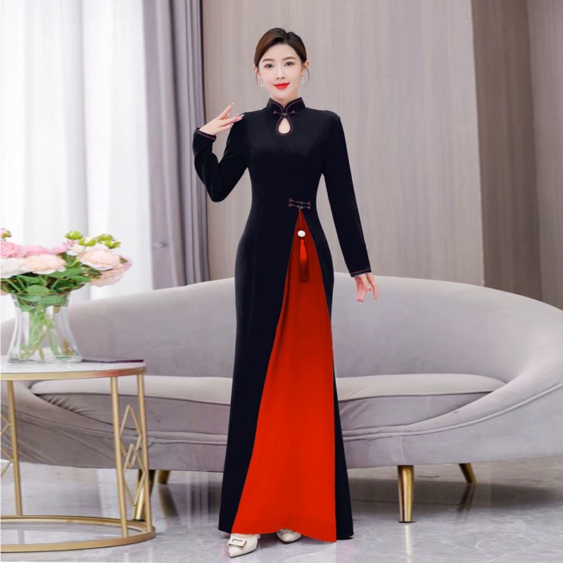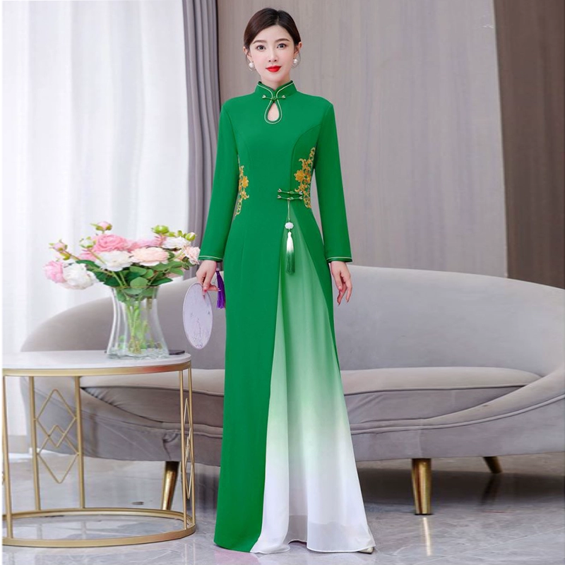 Ao Dai Dance Costume Catwalk Chinese Improved Cheongsam Skirt