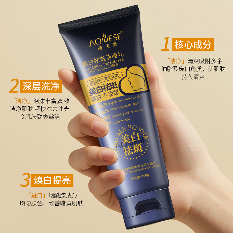 | nameOriginal | Aofu snow whitening freckle cleanser deep cleansing brighten skin tone refreshing transparent mild cleansing wholesale generation |