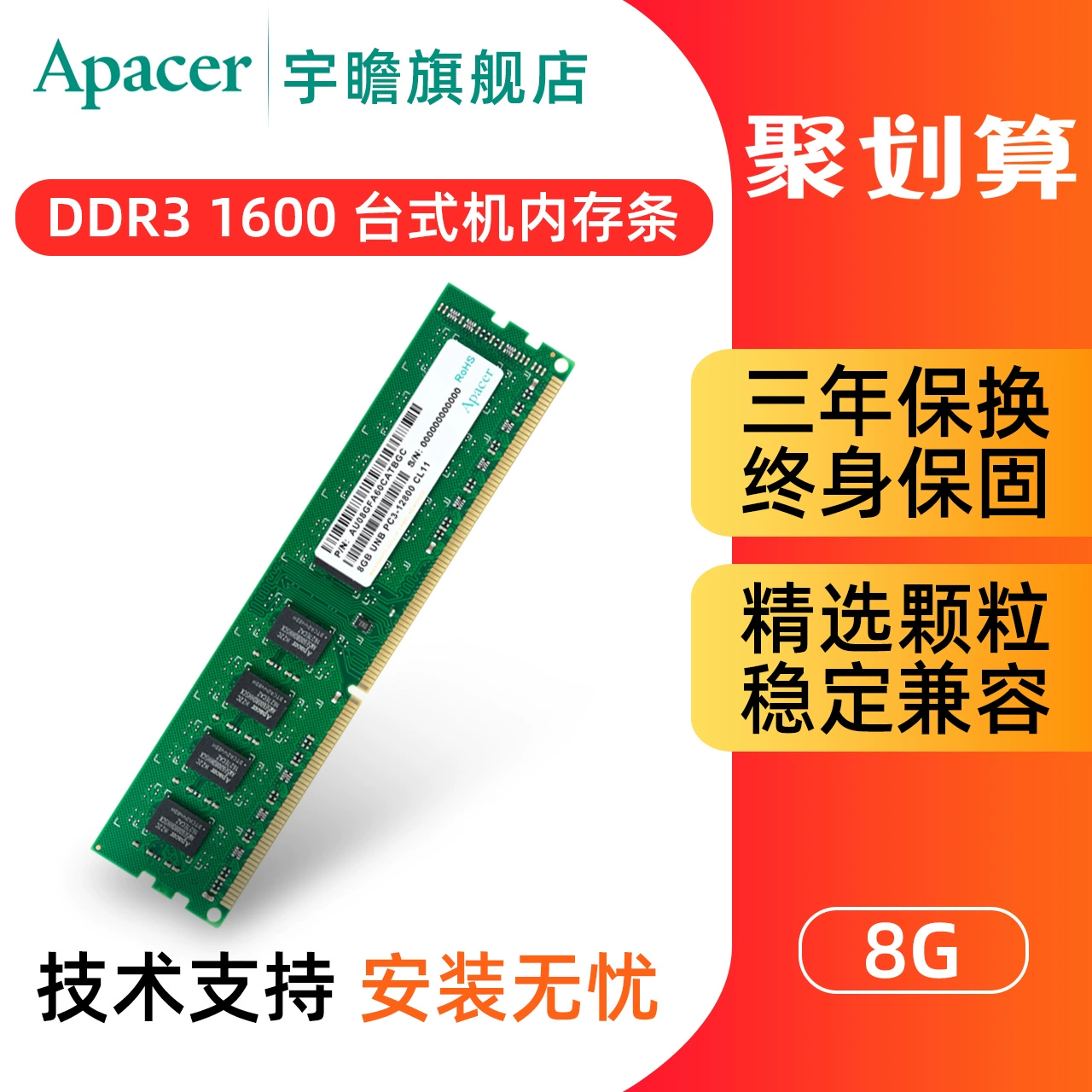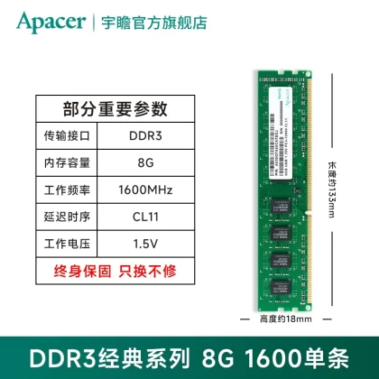 | nameOriginal | Apacer memory module DDR3 1600 8g compatible with 1333 classic third generation upgrade computer universal desktop 4g |