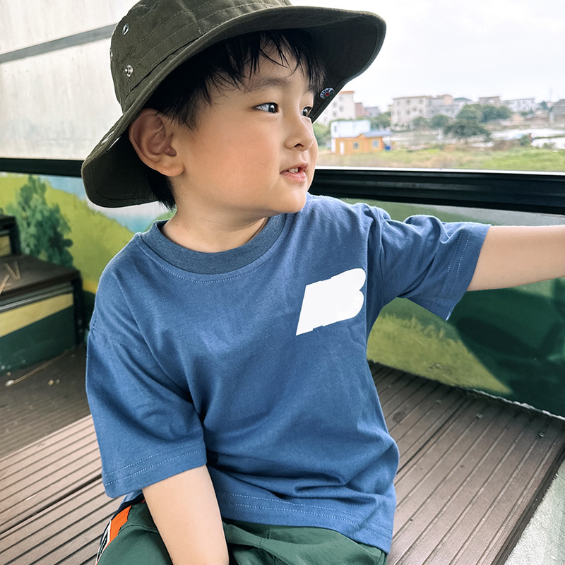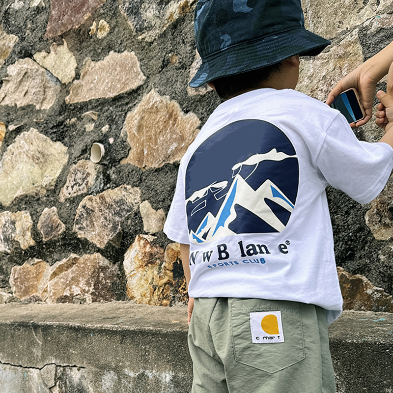 Ape Baby Brother 2024 Summer New Mountain Children’s Wear Children’s Short-sleeved T-shirt Children’s Water Paste Printed Crewneck T-shirt