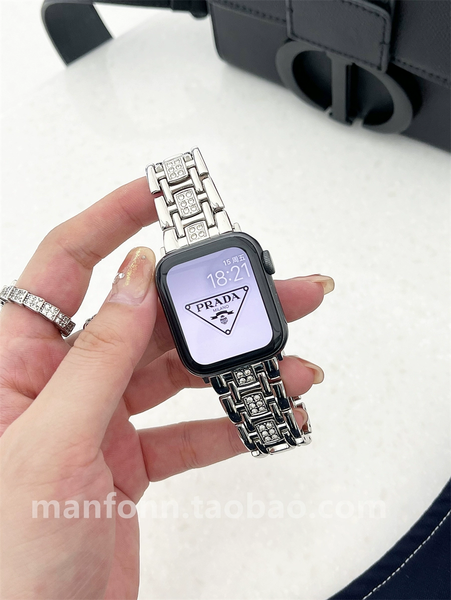 | nameOriginal | Apple watch applewatch98SE small fragrant style silver diamond chain suitable for iwatch7 metal strap |
