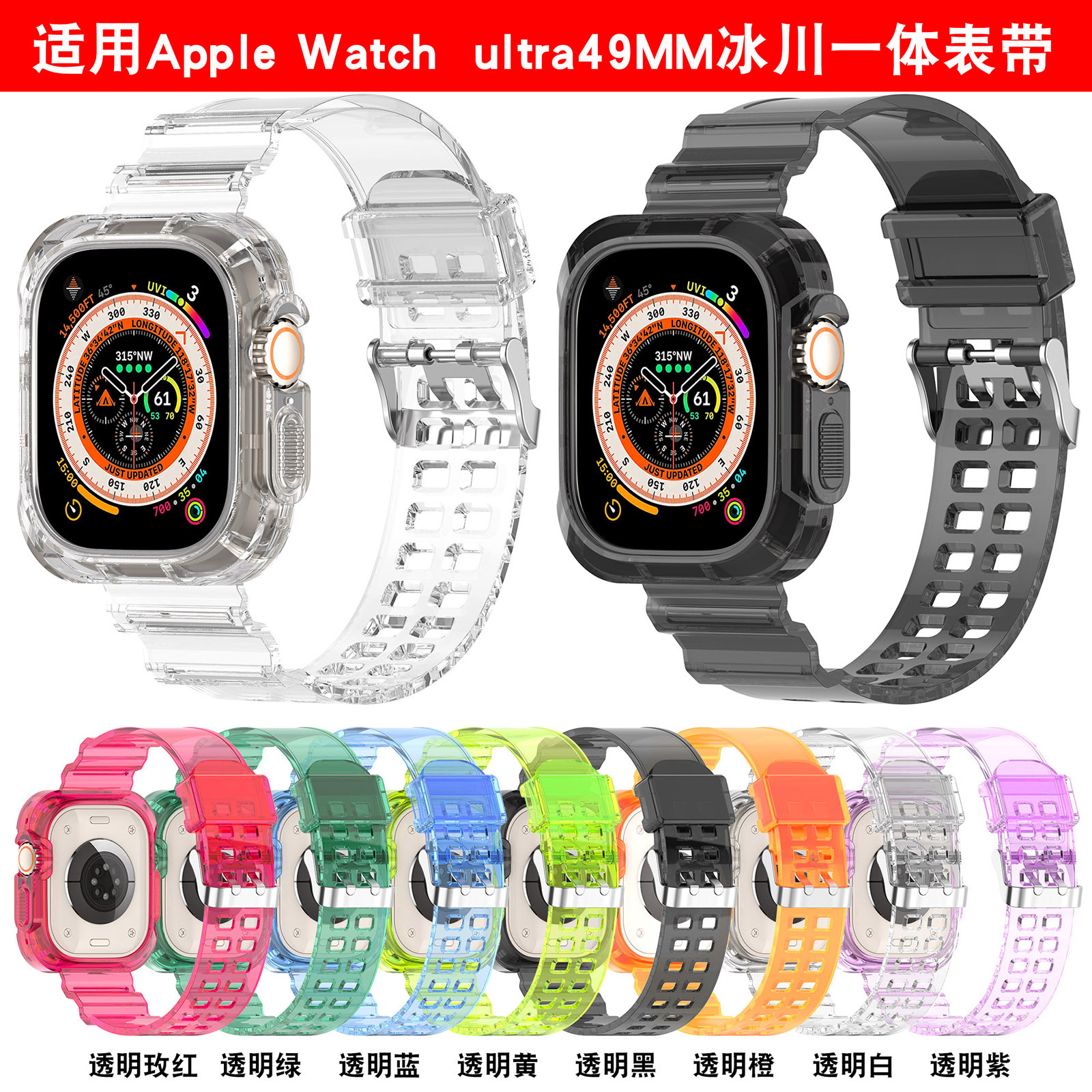 | nameOriginal | Applicable Apple watch Apple watch transparent glacier strap ultra 49mm transparent integrated strap |