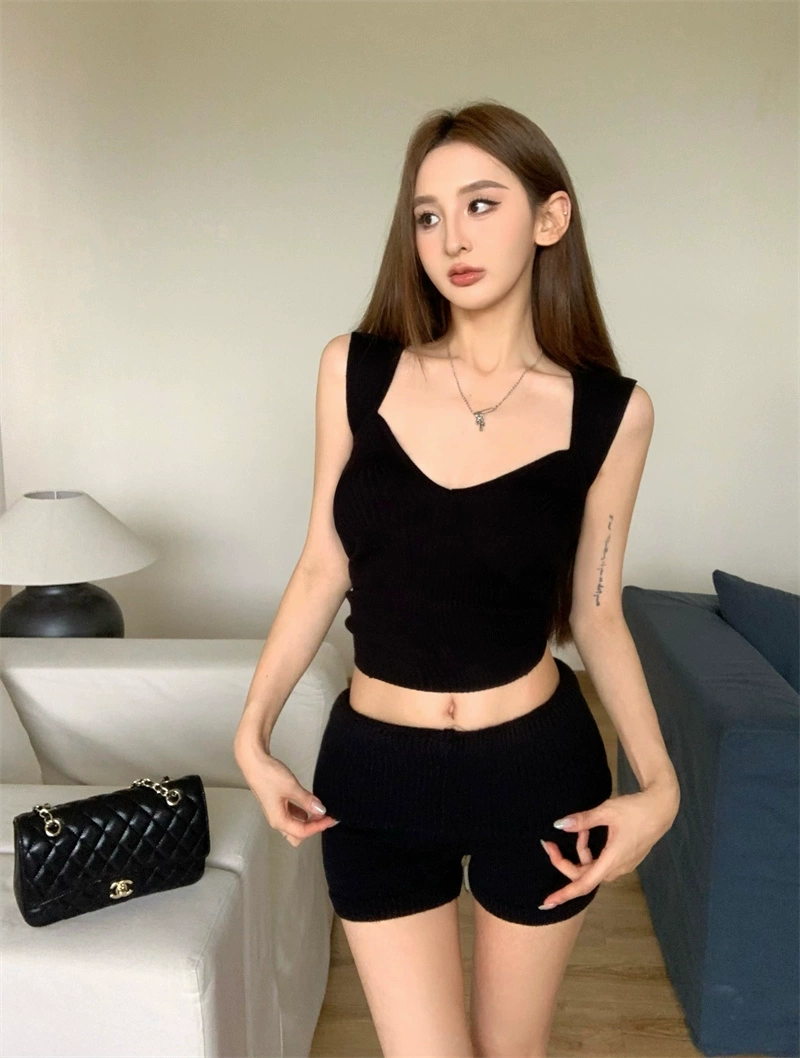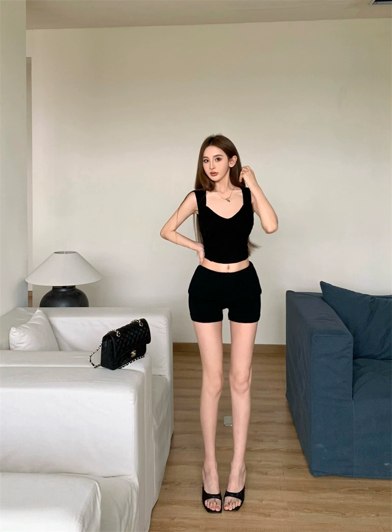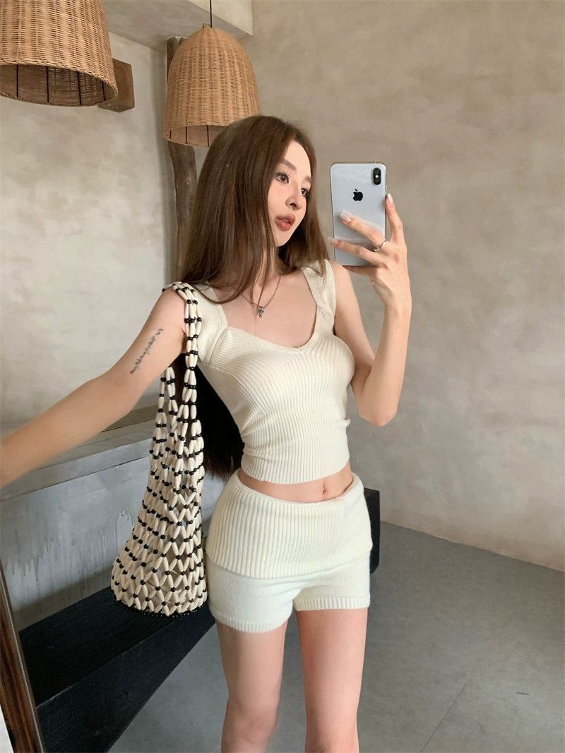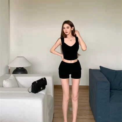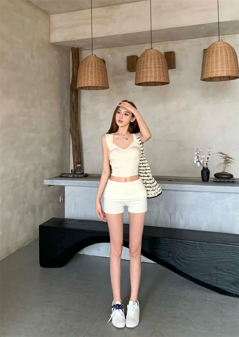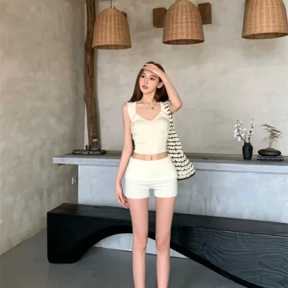| nameOriginal | Apricot color women's summer casual shorts two-piece set with suspenders |