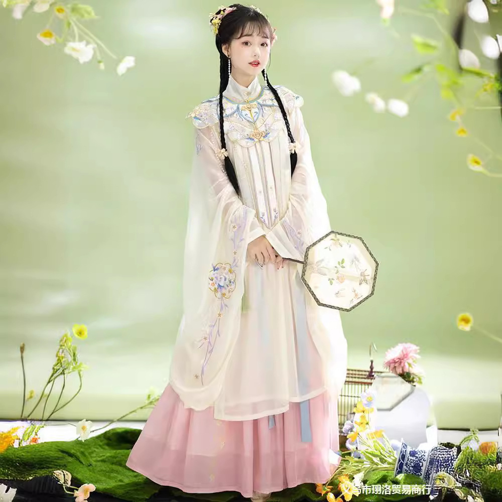 | nameOriginal | Apricot Forest Rain Cloud Shoulder Hanfu Women's Ming Style Handover Collar Chinese Style Spring Embroidery Student Dress |