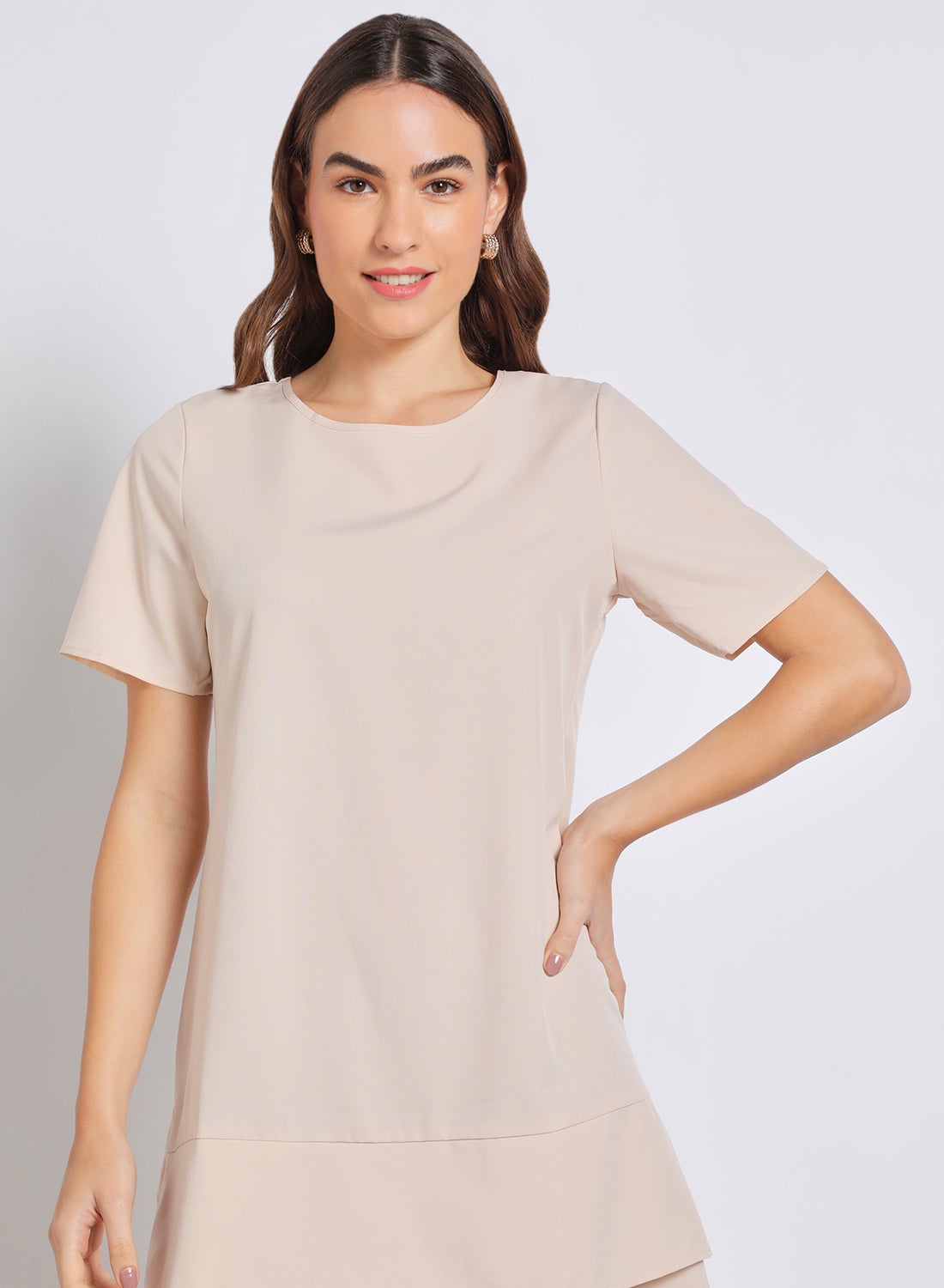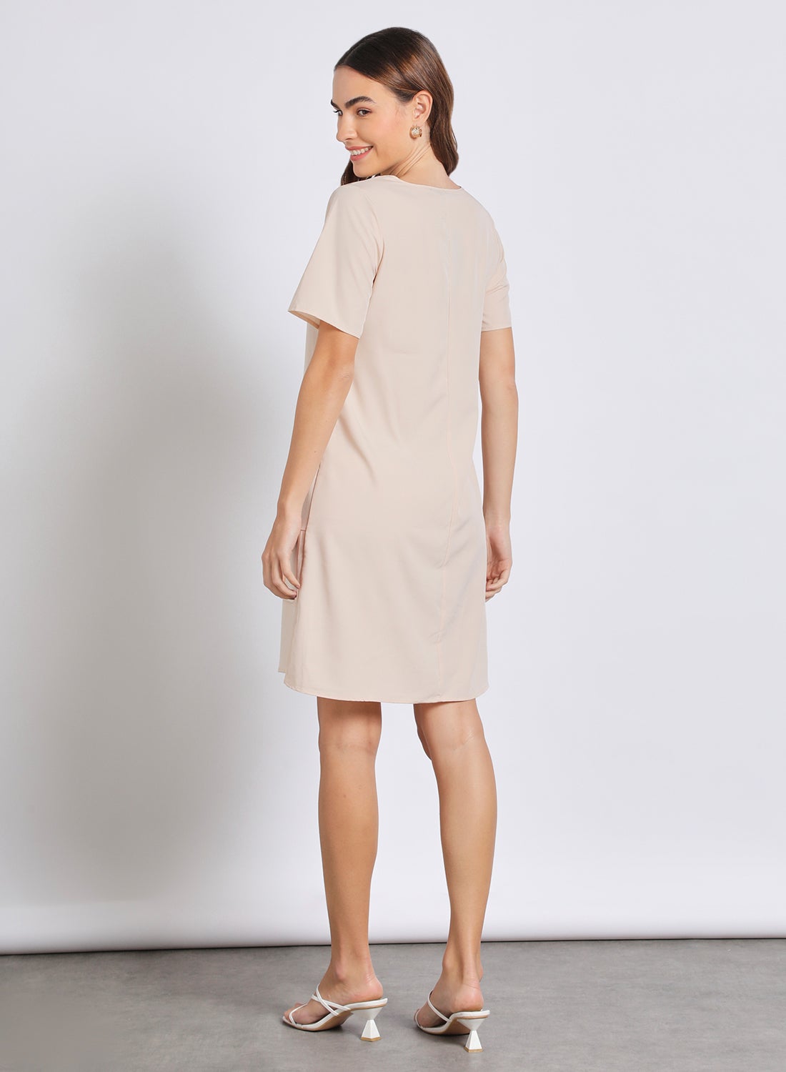 | nameOriginal | Women'S Casual Knee Length Short Sleeve Plain Basic Dress Apricot |