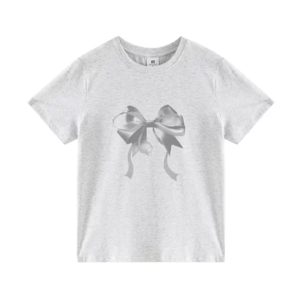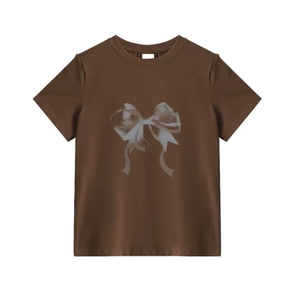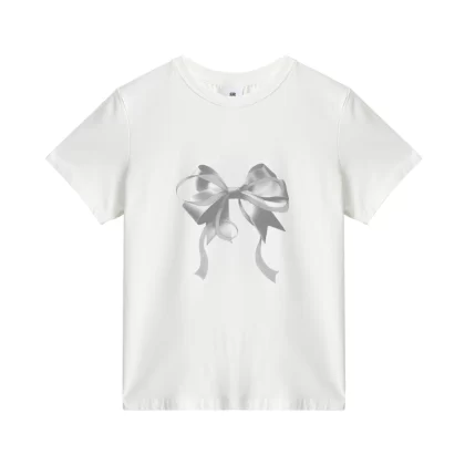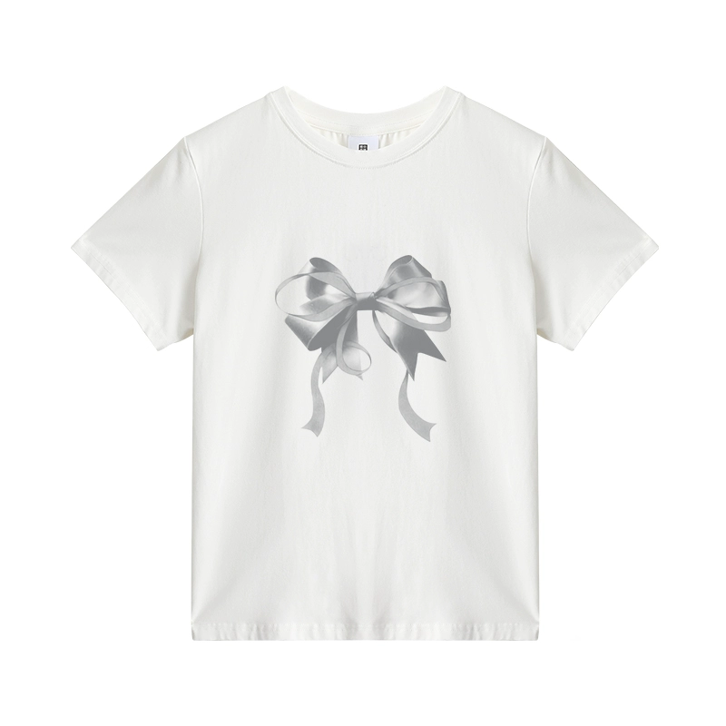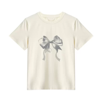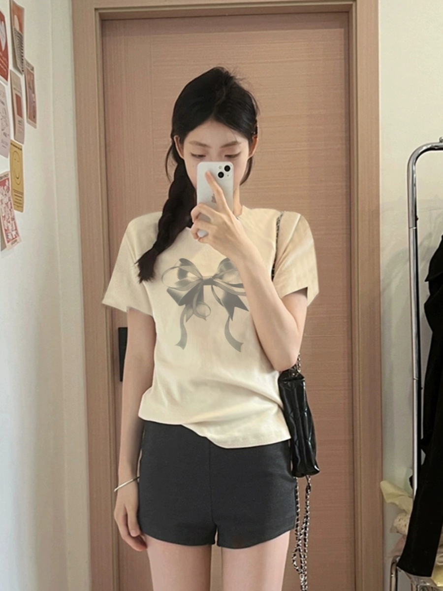 | nameOriginal | Apricot short-sleeved spring slim-fitting top with bow print |