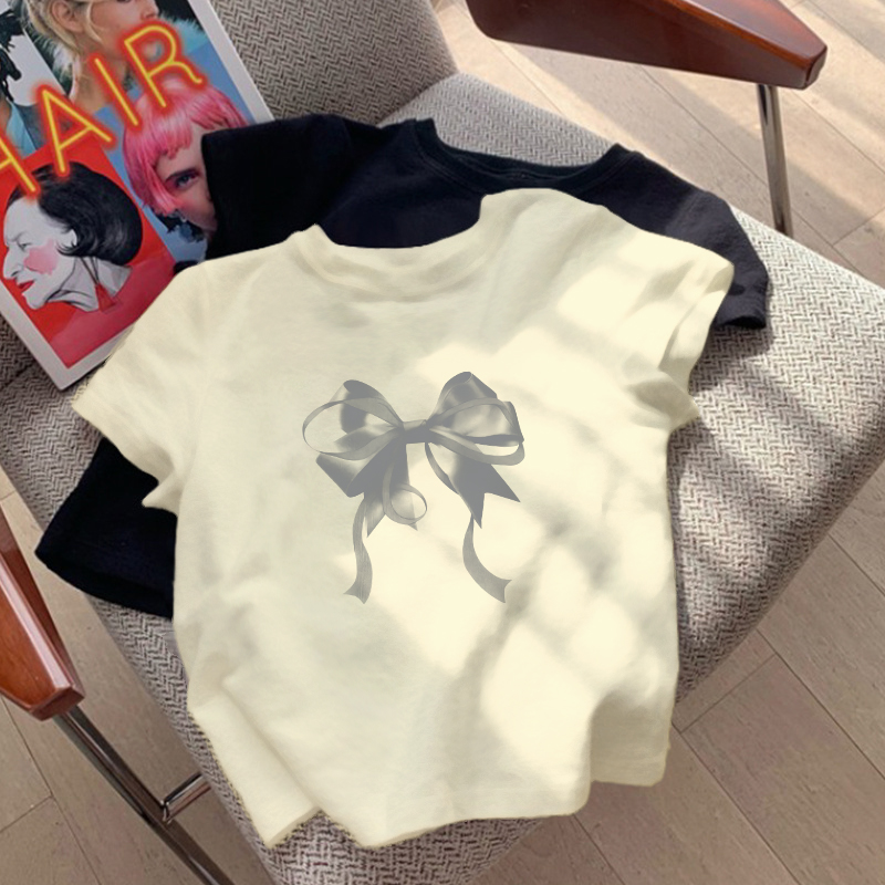 | nameOriginal | Apricot slimming right shoulder spring and summer casual short-sleeved bow |
