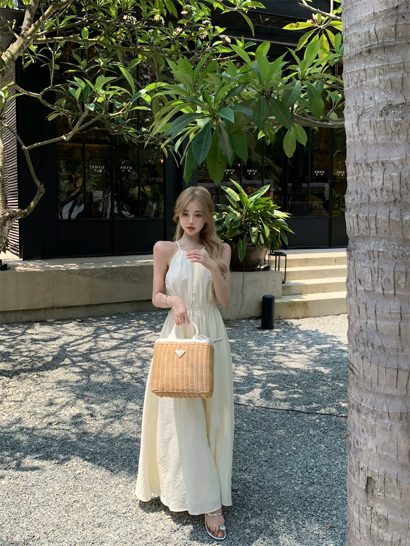 | nameOriginal | Apricot summer casual suspender dress with hollow back |