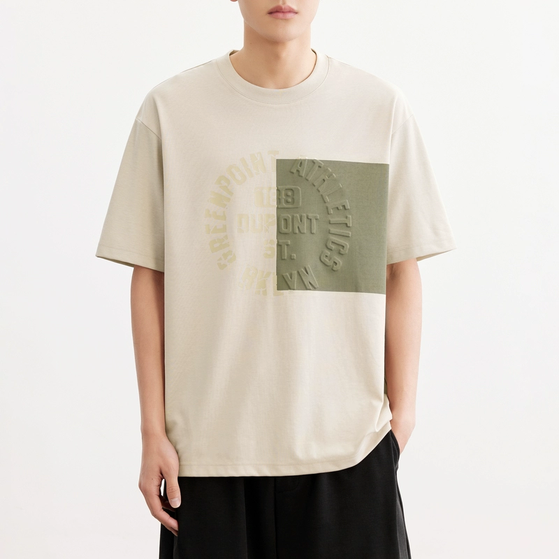 | nameOriginal | Apricot three-dimensional printed slightly loose half-sleeve ice silk cotton |
