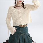 | nameOriginal | Apricot V-neck Knitted Cardigan Jacket Women's Spring 2023 New Student Lazy Sweet Loose Long-sleeved Top |