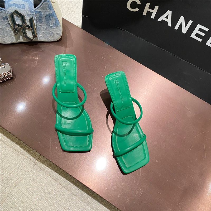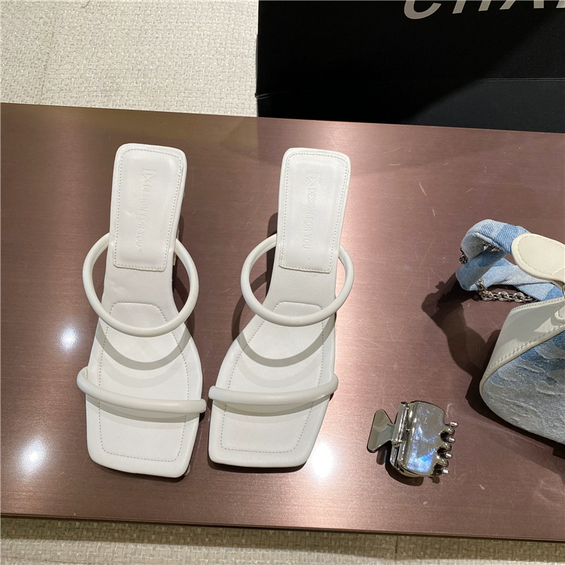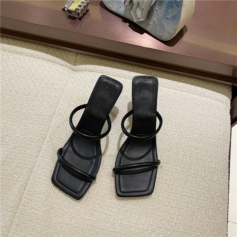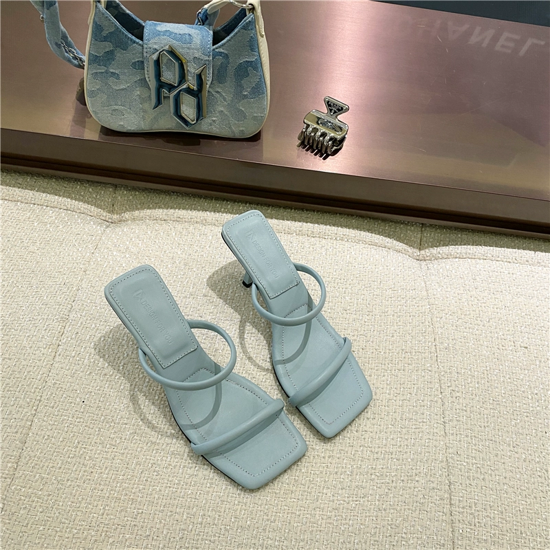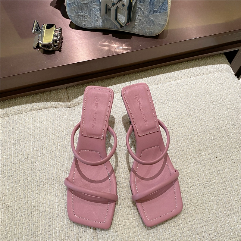 [April 04] French square toe thin strap high heels for women summer 2024 new stiletto sandals for women and slippers
