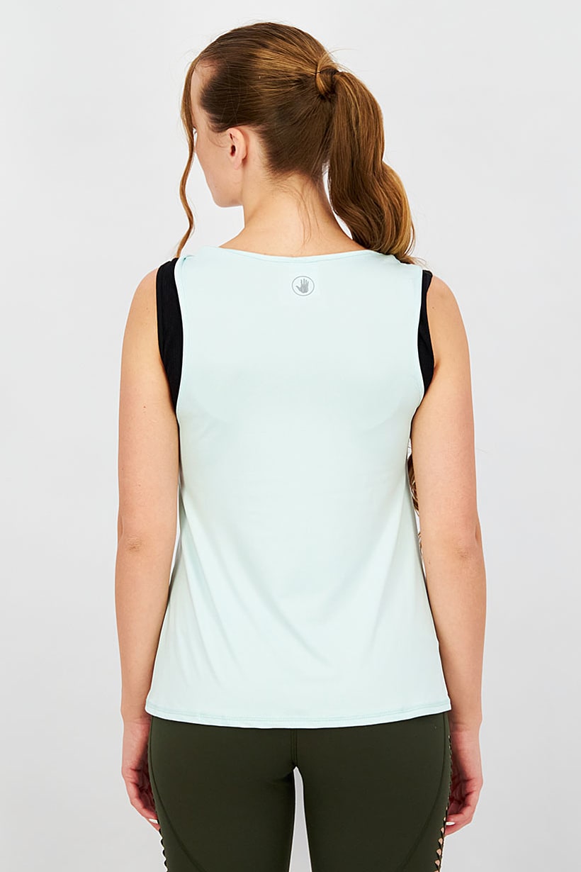 Aqua Sleeveless Tank Top for Women’s Performance Fit.