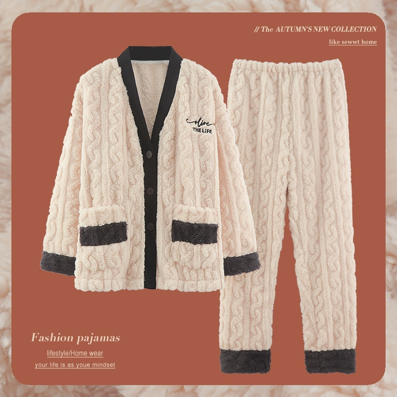 | nameOriginal | Arctic velvet pajamas for women in autumn and winter long-sleeved coral velvet thickened plus velvet winter flannel large size home wear set |
