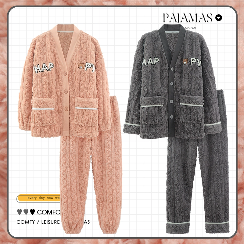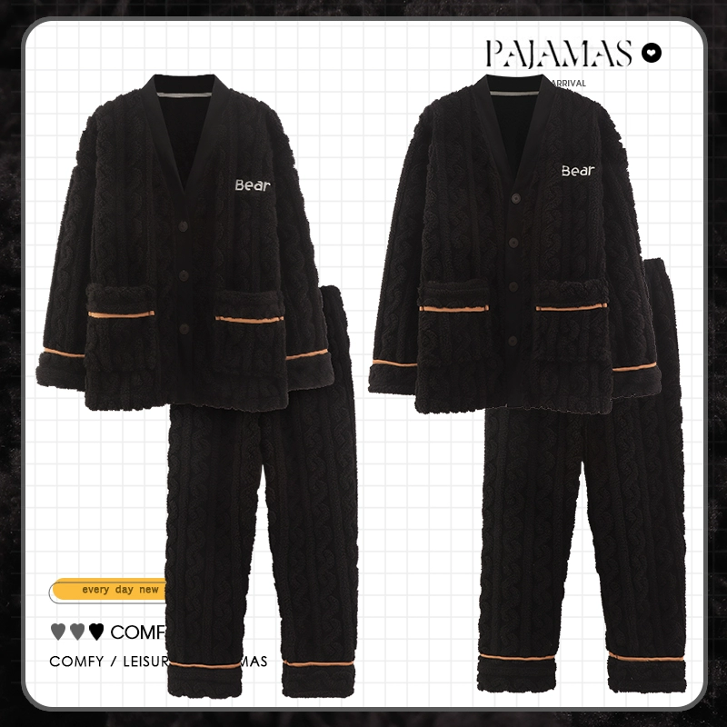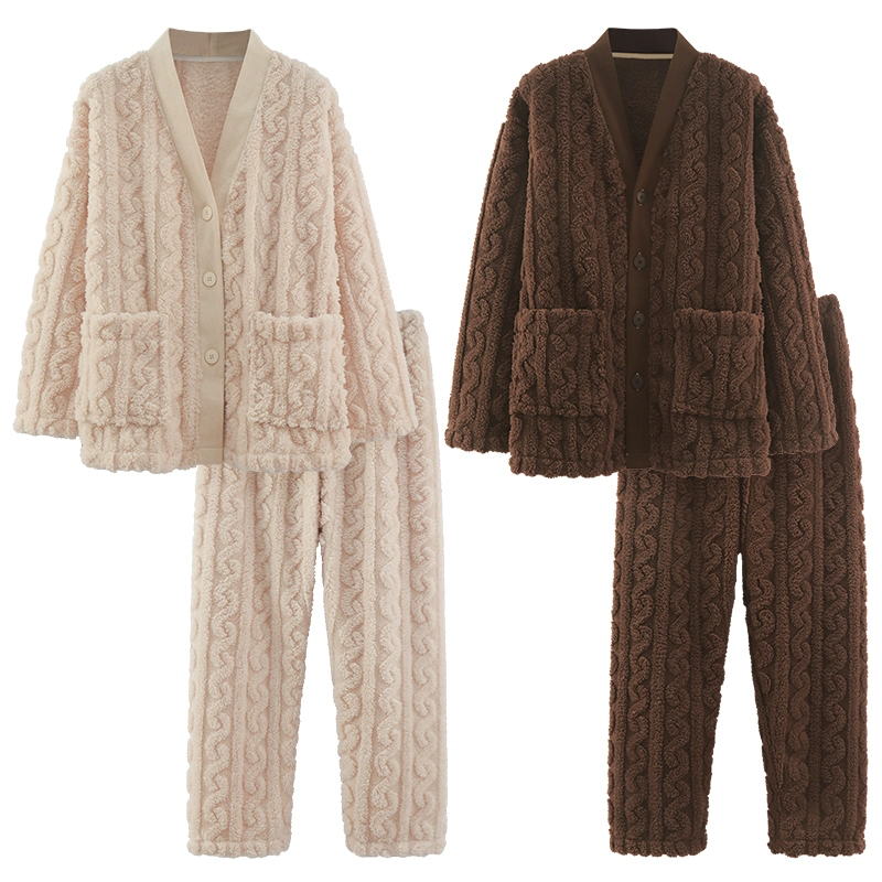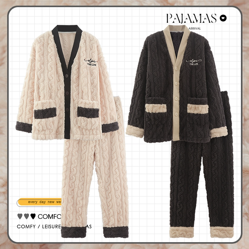 Arctic velvet winter flannel couple pajamas women’s casual plus velvet thickened coral velvet men’s winter home clothes