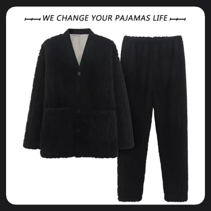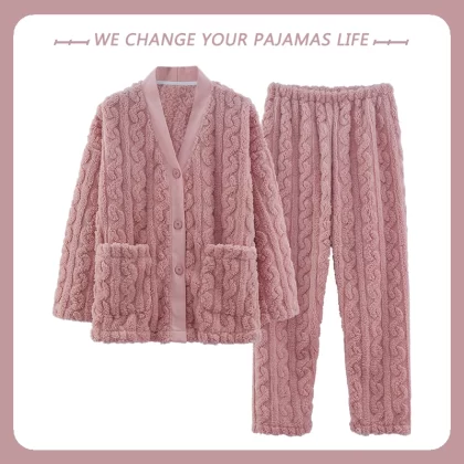 Arctic velvet winter flannel couple pajamas women’s casual plus velvet thickened coral velvet men’s winter home clothes