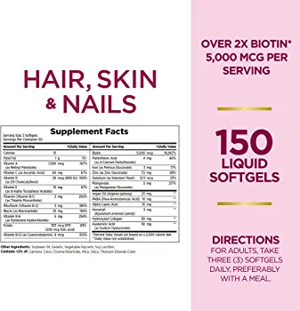 | nameOriginal | Nature's Bounty Hair, Skin & Nails Rapid Release Softgels, Argan-Infused Vitamin Supplement with Biotin and Hyaluronic Acid, Supports Hair, Skin, and Nail Health for Women, 150 Count |