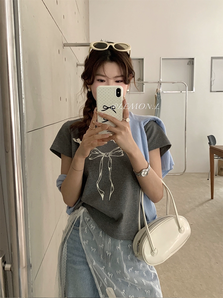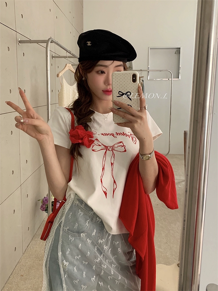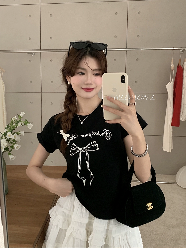 | nameOriginal | Ariti bow print round neck short-sleeved T-shirt |