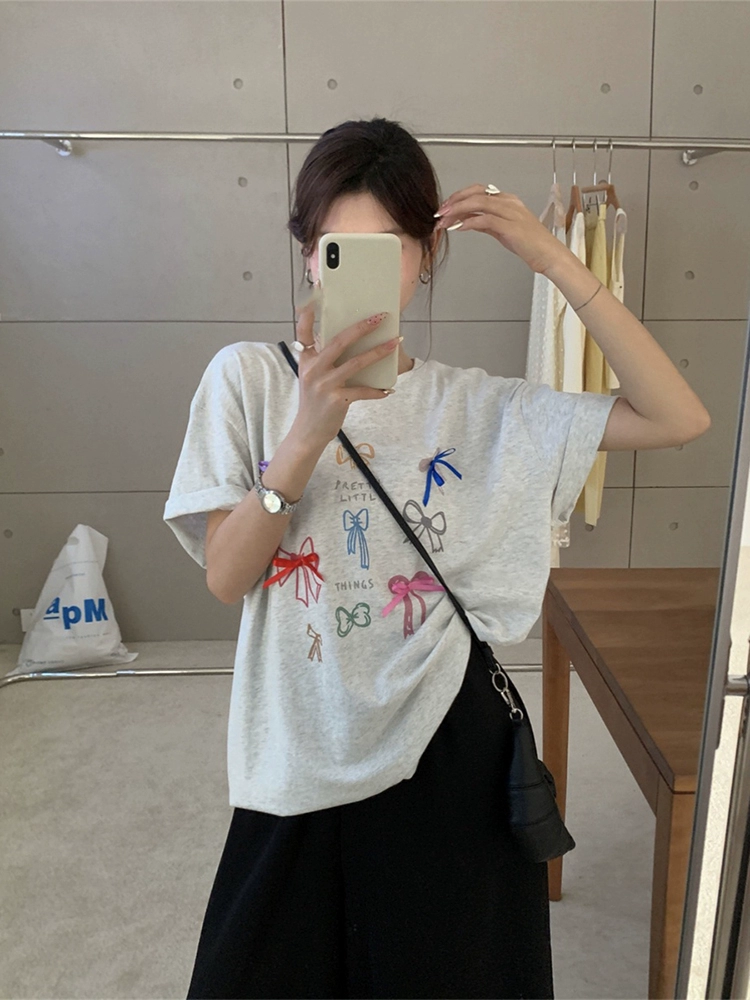 | nameOriginal | Ariti retro niche short-sleeved bow print |