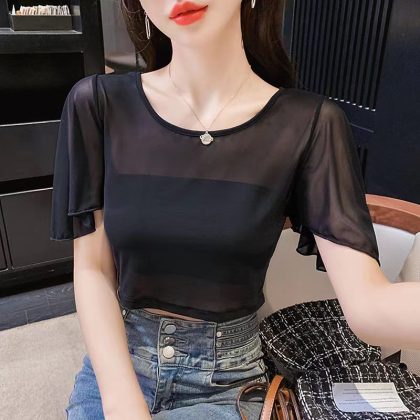 | nameOriginal | Arm Covering Skirt All-match Ultra-thin Perspective Mesh T-shirt Round Neck Half Short Bat Sleeve Short Sleeve Base Blouse |