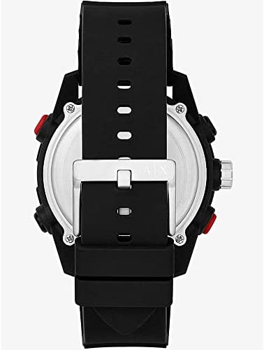 Armani Exchange Men's Analogue-Digital Quarz Watch with Silicone Strap AX2960, Black, strap