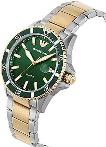 The Emporio Armani Watch for Men is a stunning timepiece that exudes luxury and sophistication. With a sleek 42mm 2T silver/gold stainless steel case and a matching stainless steel strap, this watch is the perfect accessory for any stylish man. The three hand date movement ensures accurate timekeeping, while the multicolour bracelet adds a touch of personality to the design. Whether you’re dressing up for a formal occasion or simply want to elevate your everyday look, the Emporio Armani Watch for Men is the perfect choice.