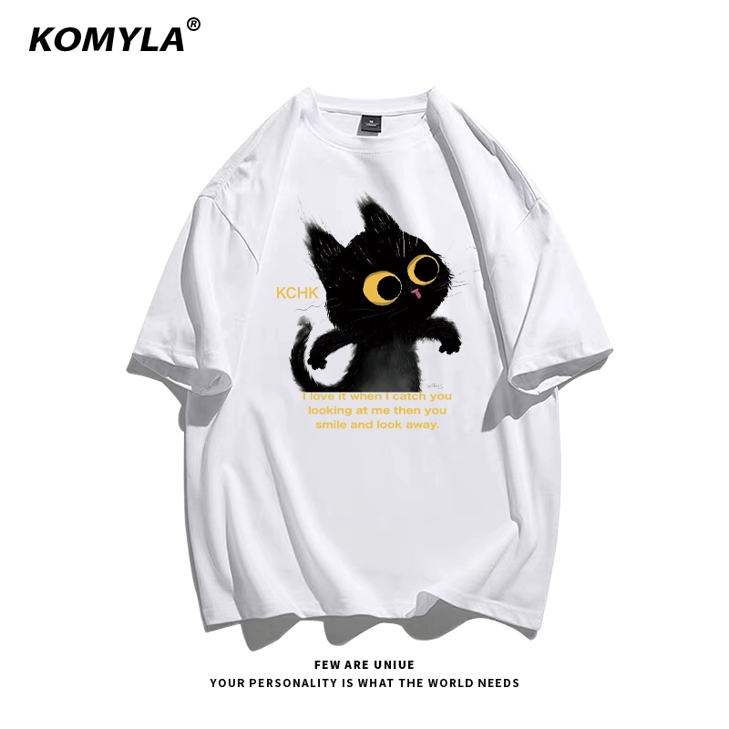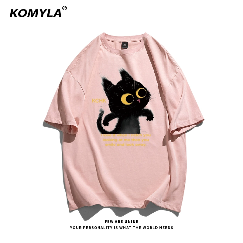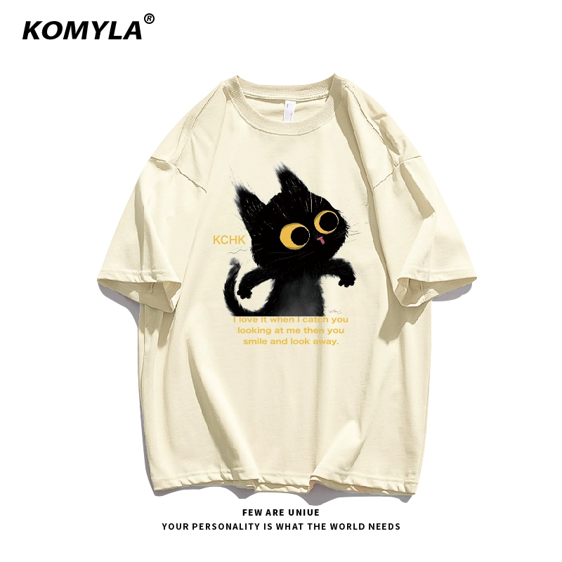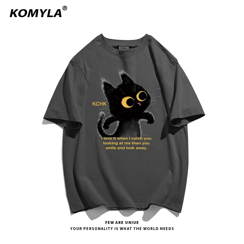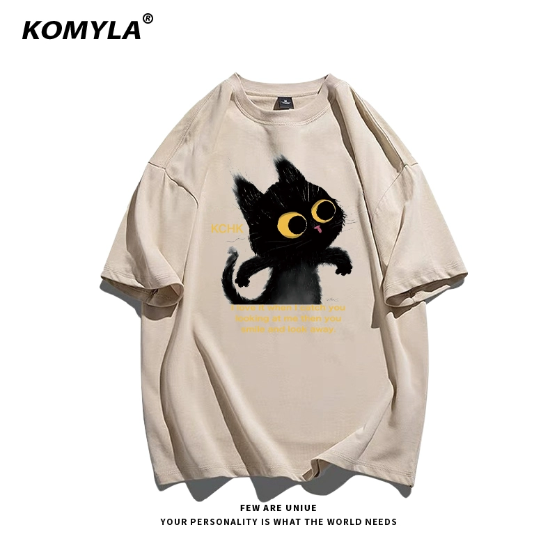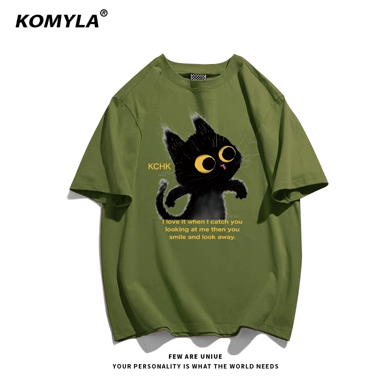 | nameOriginal | Army green animal black cat print ins short sleeve t-shirt |