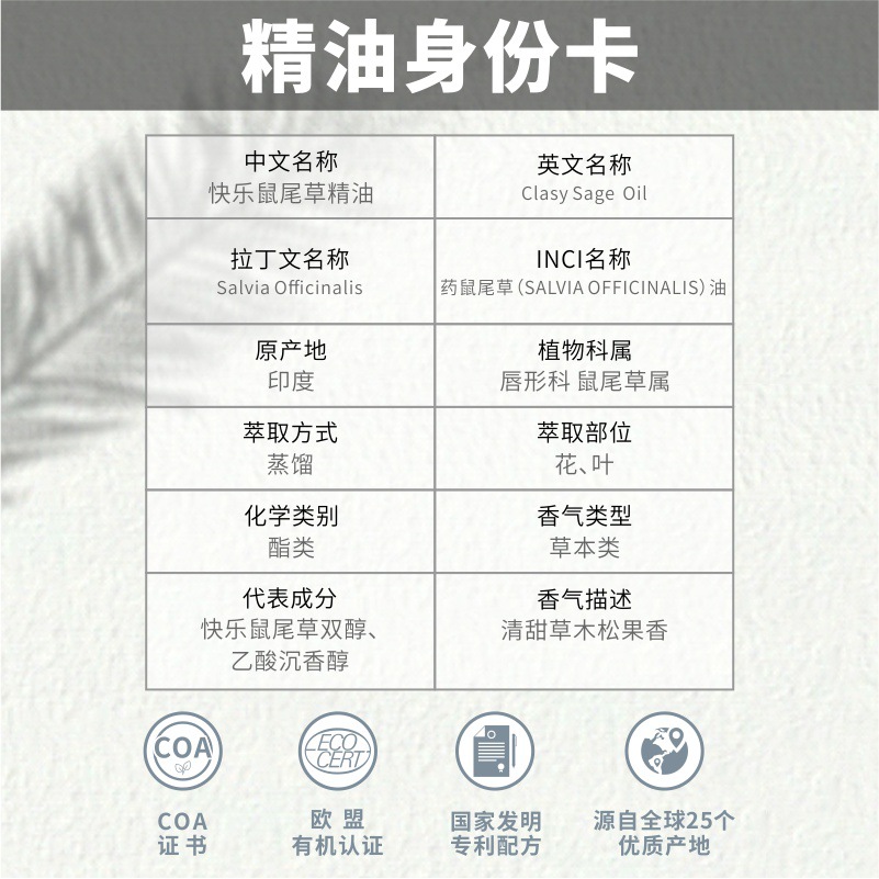 | nameOriginal | Aromatherapy Grade India Imported Happy Sage Essential Oil Natural Plant Aromatherapy Fragrance Beauty Salon Massage Essential Oil |